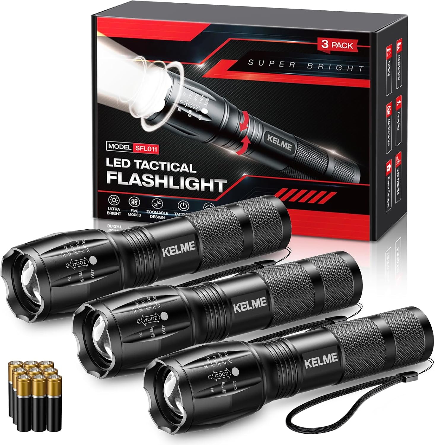 Bright Flashlights High Lumens: Illuminate your adventure with high lumen up to 1500 lumens(Max), designed to deliver powerful bright lighting effect. High performance KELME flashlight features bright LED light beads, 10 times brighter than regular led flashlights. 3 Pack flashlight set coming with 9 AAA batteriesis perfectly suited for your home outdoor adventures and camping! Light up your world with the KELME flashlight – bright, reliable, and ready for any adventure!