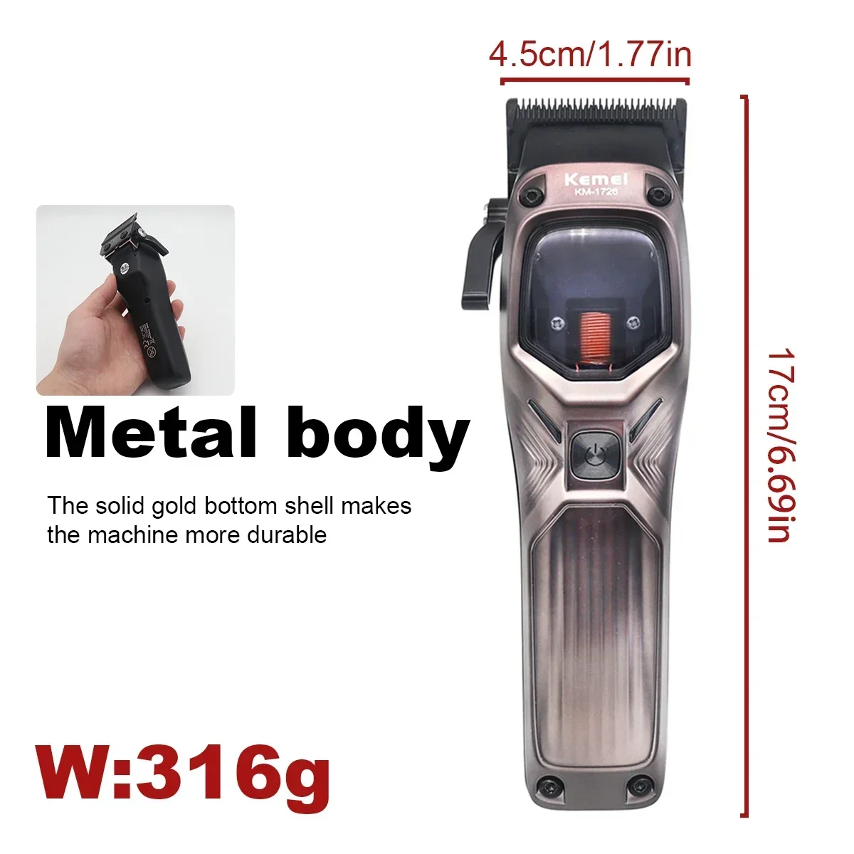 Feature Description for KEMEI-KM1726 Professional Hair Clipper: