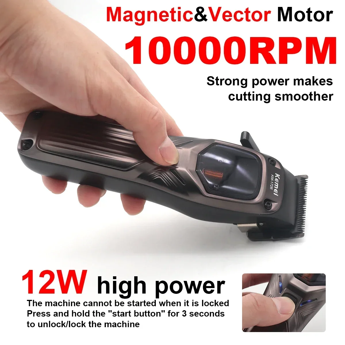 KEMEI KM-1726 Professional Hair Clipper for Men with DLC Blade 10000RPM Magnetic Vector Motor Men’s Haircut Machine Barber Shop