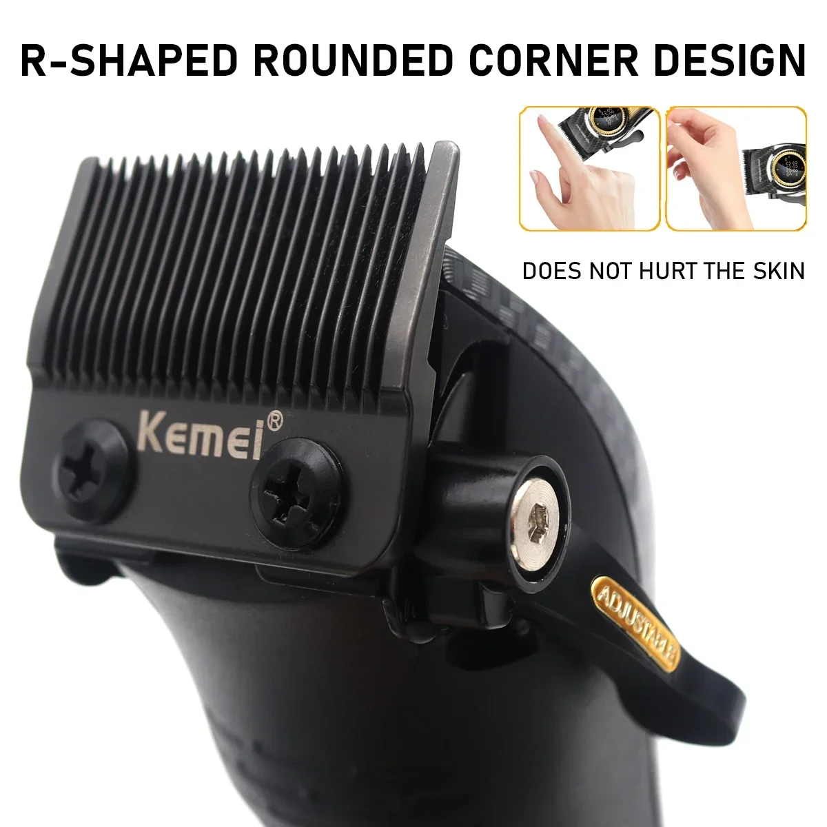 – **Precision Cutting with Zero Gapped Blades**: Designed for accuracy, the zero-gapped blades of the Kemei KM-2242 allow for ultra-close cuts, making it an essential tool for achieving sharp hairlines and intricate designs.