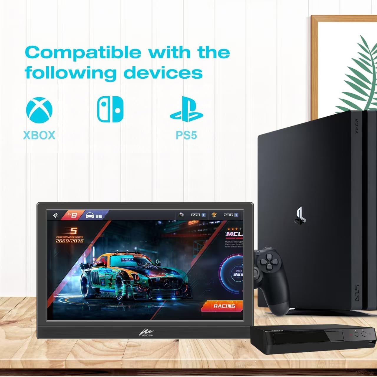 Portable travel monitor: The HDMI monitor is small, thin, and rugged, with built-in speakers and a 90° adjustable stand that eliminates the need for extra heavy protective cases, the portable monitor is perfect for your business, travel, or home entertainment gaming setup.