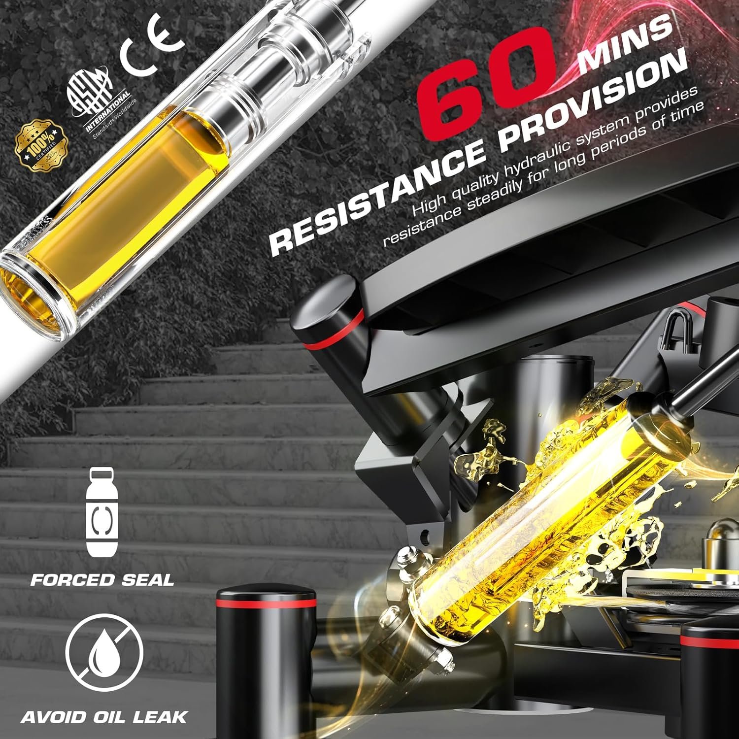 Premium Cylinder with Superior Tightness – The stepper utilizes high-quality hydraulic cylinders, ensuring consistent resistance, long-lasting duration, and excellent tightness for keeping the performance.