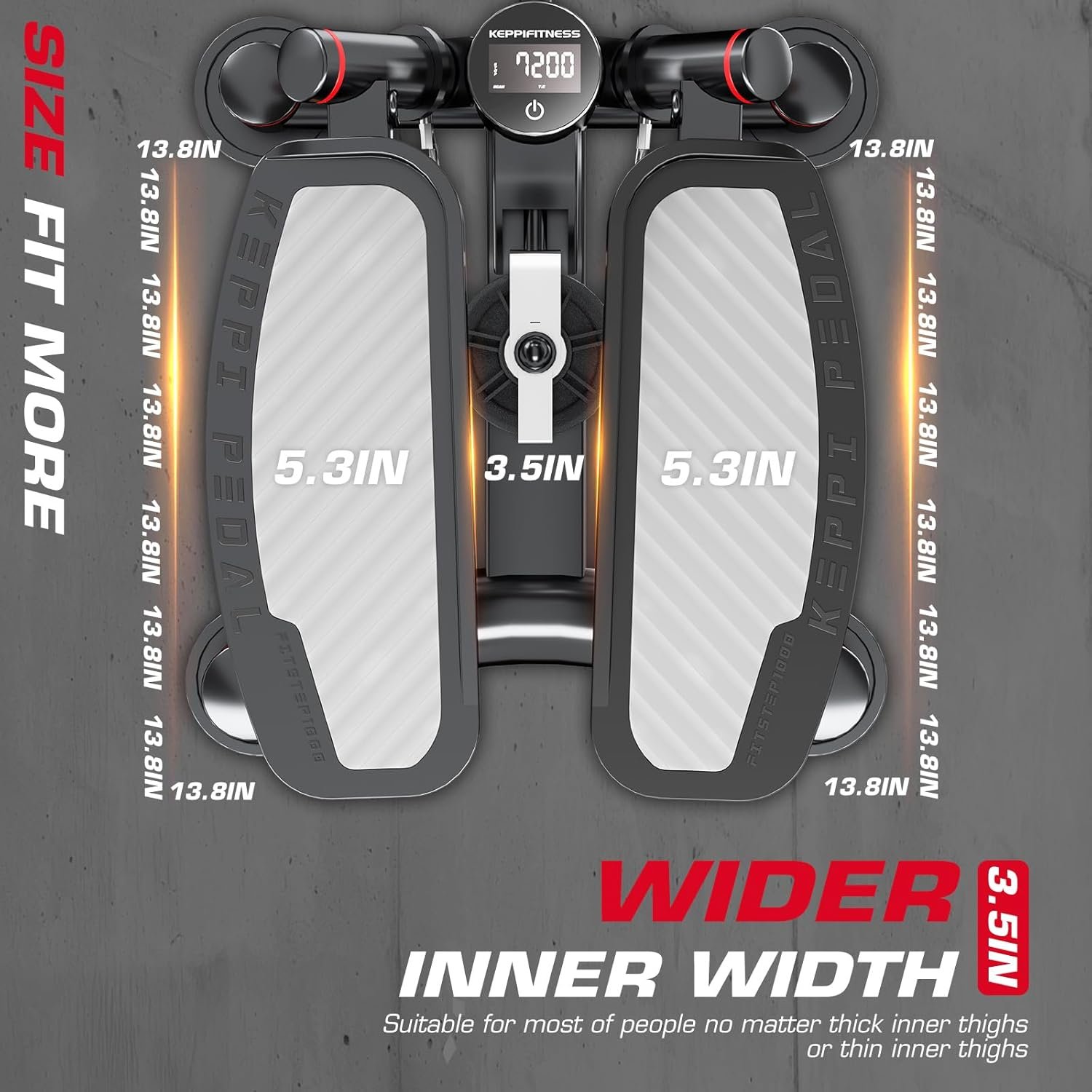 Optimal Size with Wider Inner Width – Measuring 17.7”L x 16.5”W x 9.8”H and a 3.5” inner width, this exercise stepper is designed to accommodate users of various sizes no matter you have thin or thick inner thighs.
