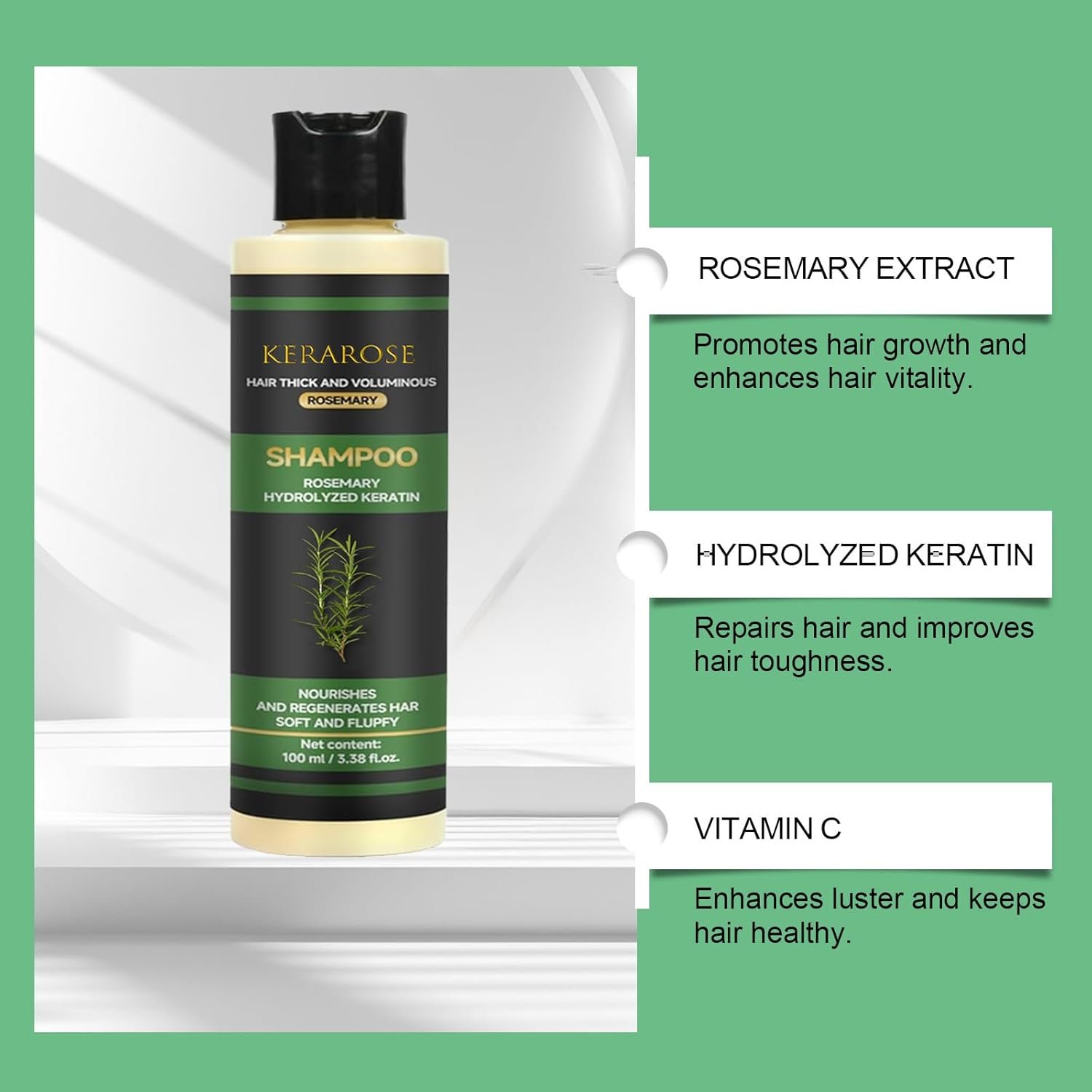 Kerarose Rosemary Hair Growth Shampoo, Natural Thickening & Strengthening Shampoo with Hydrolyzed Keratin and natural extract of rosemary (1)
