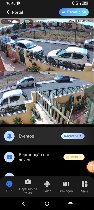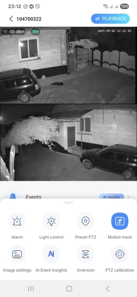 There are 2 video screens in APP, the upper one is fixed position camera and the lower one is PTZ camera.