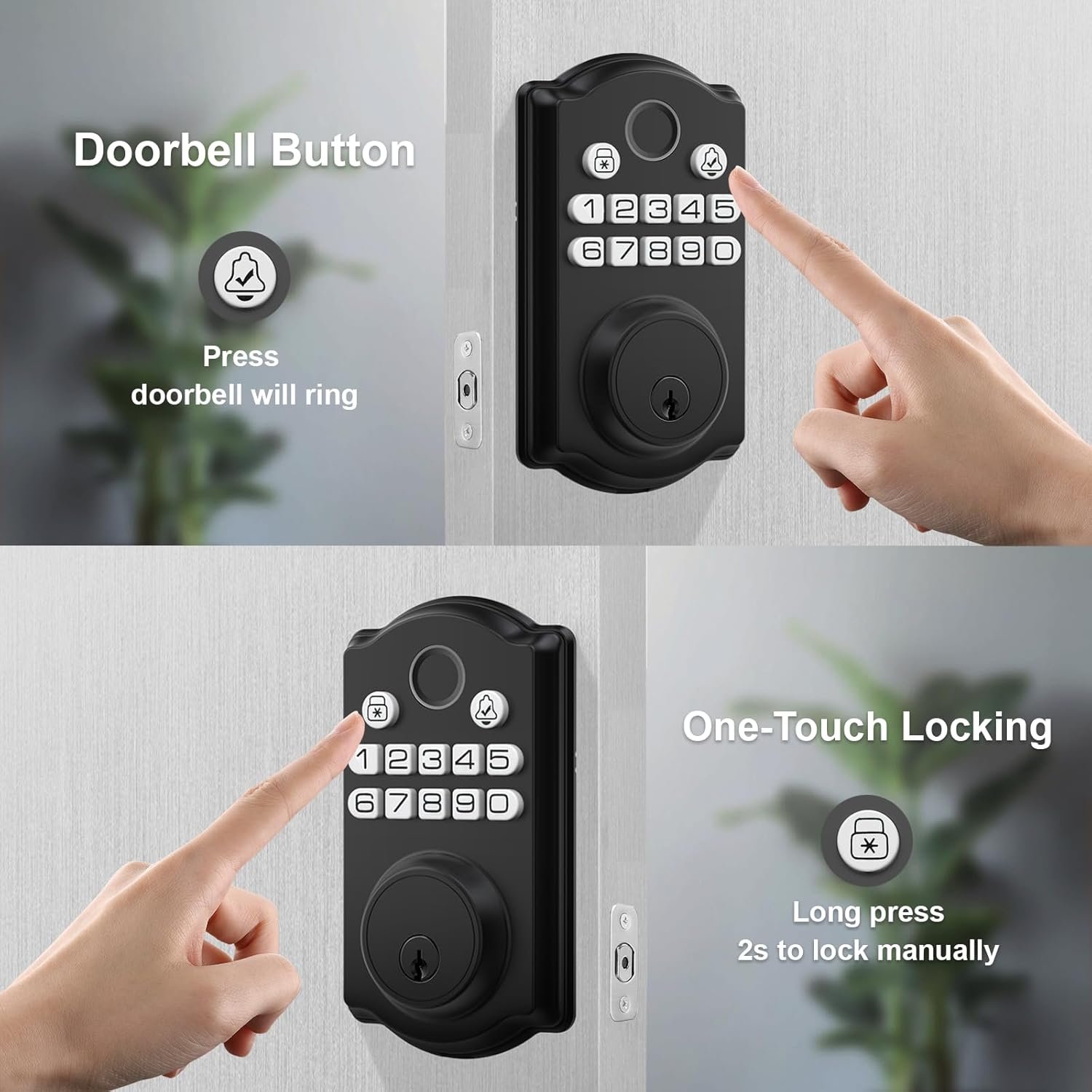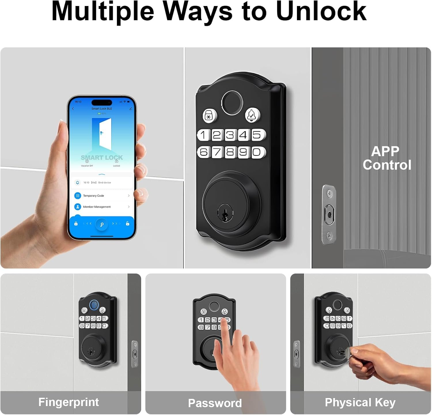 Convenient Keyless Entry Door Lock: The smart door locks for front door offers a convenient keyless entry solution, fingerprint recognition, smartphone app, customizable codes, or a traditional mechanical key. This smart lock is perfect for various settings, including homes, commercial, properties, apartments, and offices