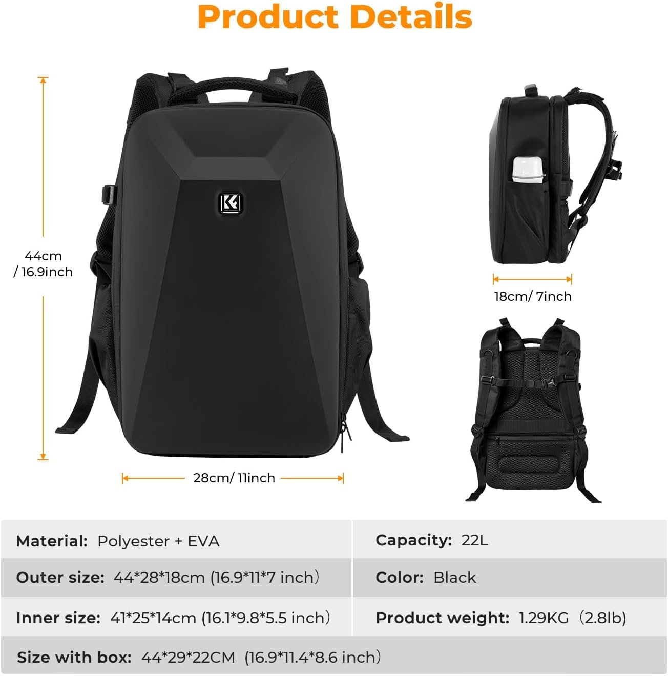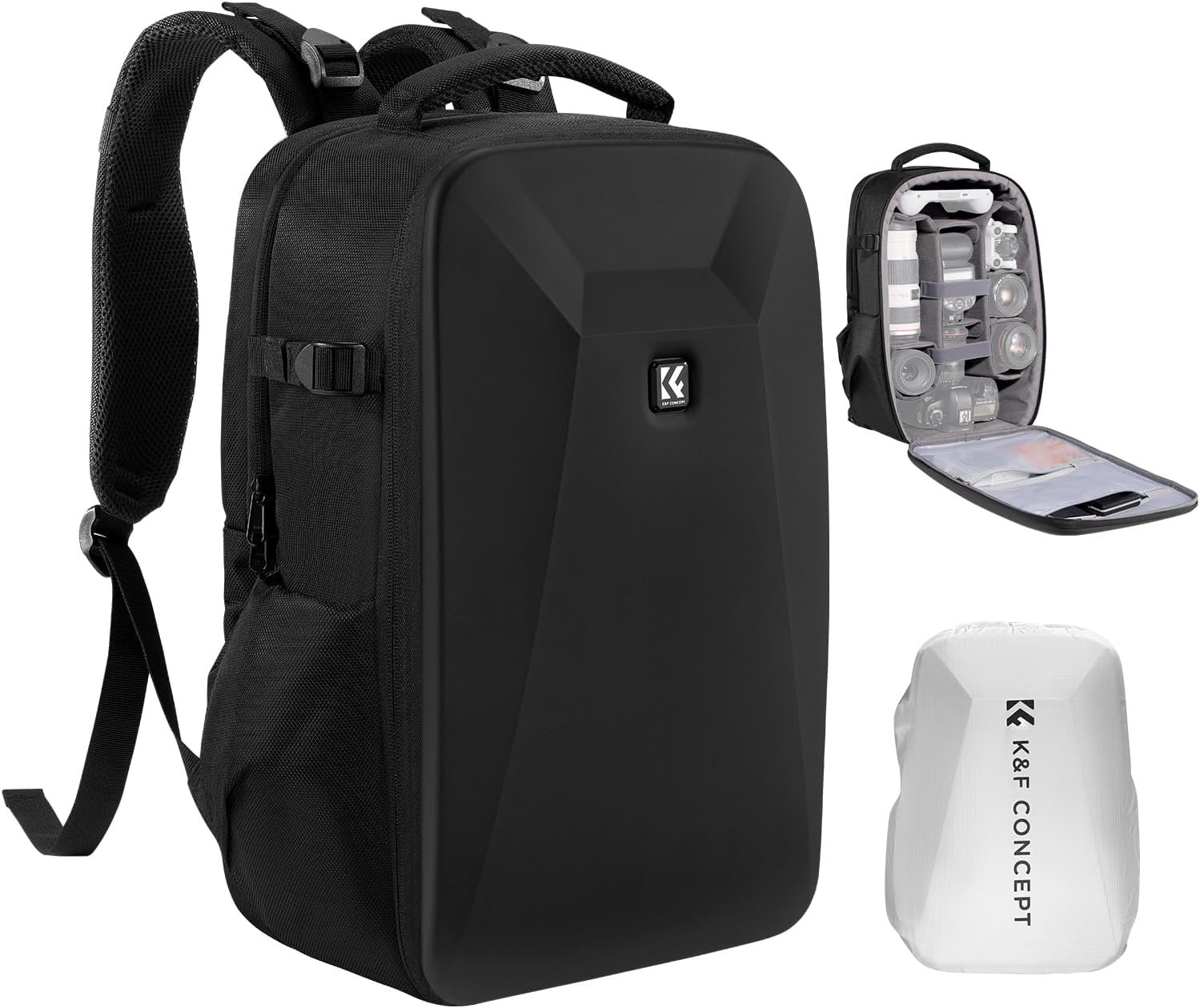 K&F Concept Camera Backpack,Hardshell Photography DSLR Camera Bag with 15-15.6 Inch Laptop Compartment Waterproof Hard Shell Camera Case Compatible for Canon/Nikon/Sony/DJI Mavic Drone