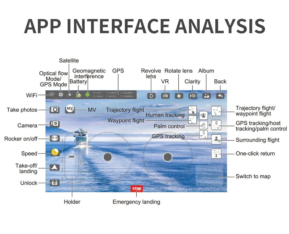 360 degree fixed point surround Headless mode Speed switch Route planning flight
