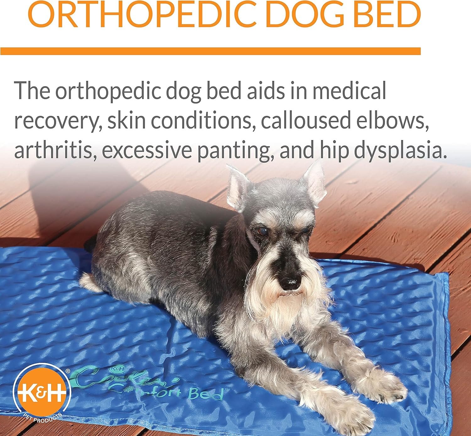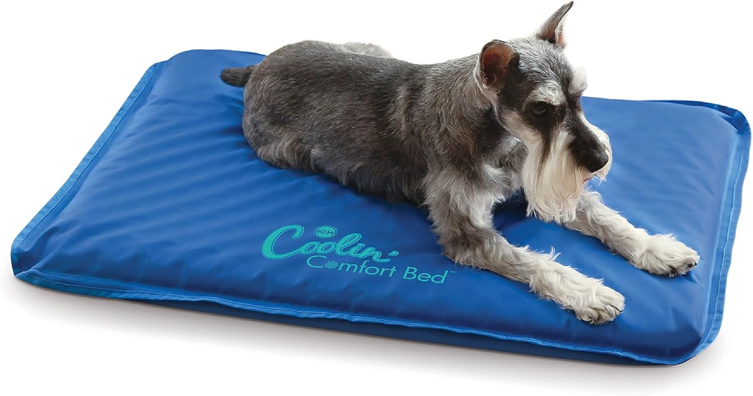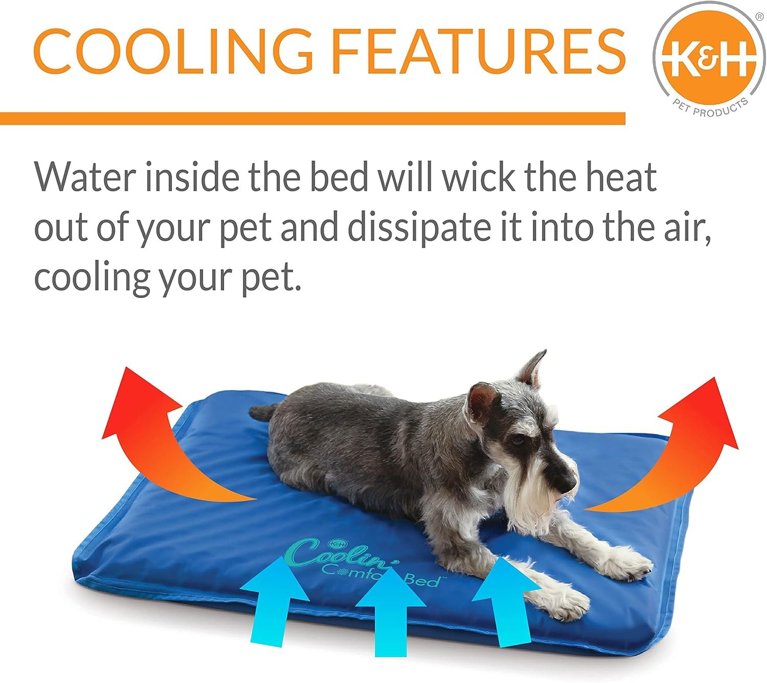 SIZE: K&H Coolin’ Comfort Bed cooling dog bed cooling pad for dogs MEDIUM measures 22″ x 32″; perfect for medium breeds like Bulldog, Boxer, Australian Shepherd, Blue Heeler, Basset, Beagle, etc
