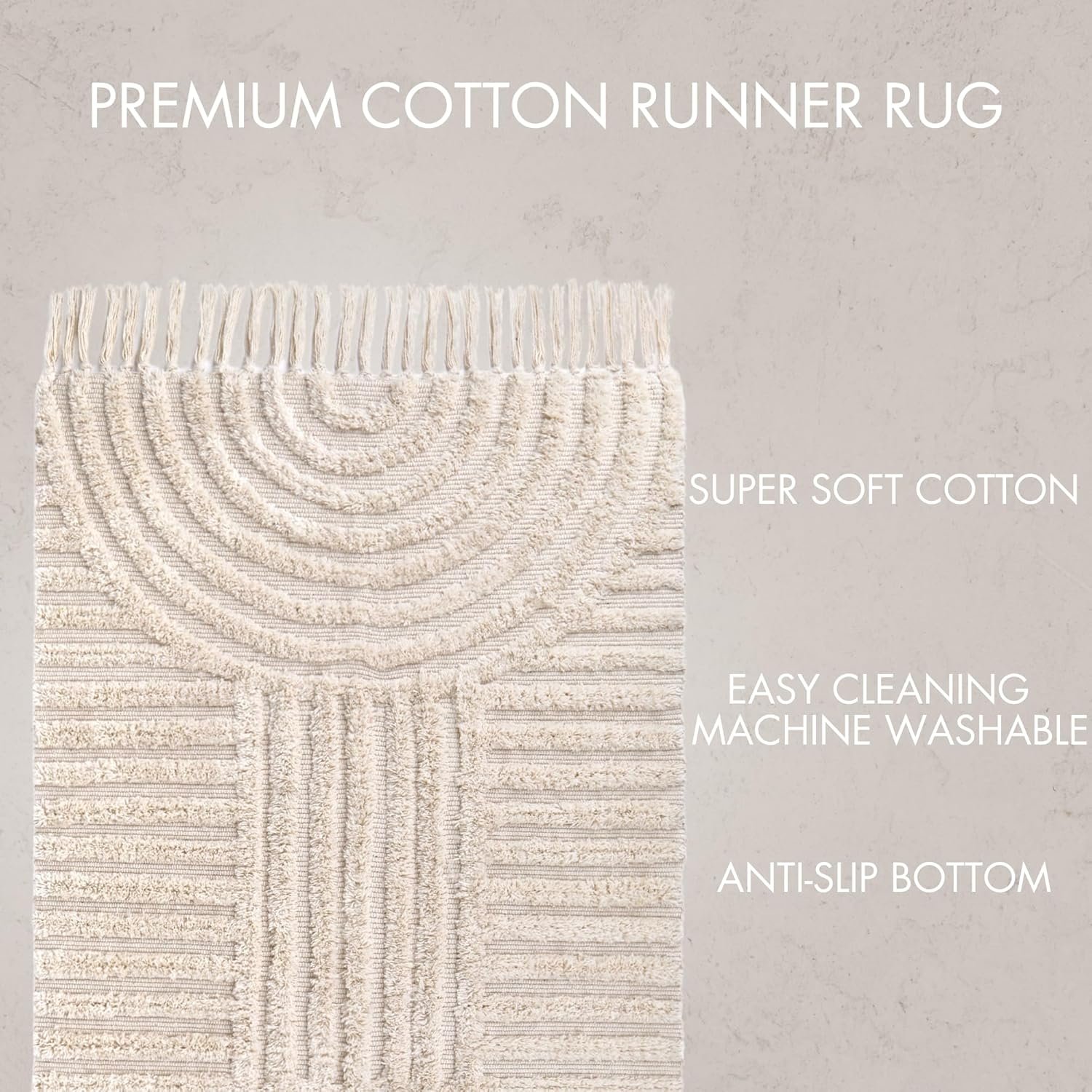 Embrace Easy Living – Machine Washable At Cold Wash: Ensuring both durability and hygiene is a breeze with our runner rug. Just check and tighten the knots of the tassels as needed, then toss the beige rug into the machine at cold wash. Fresh & ready in no time!