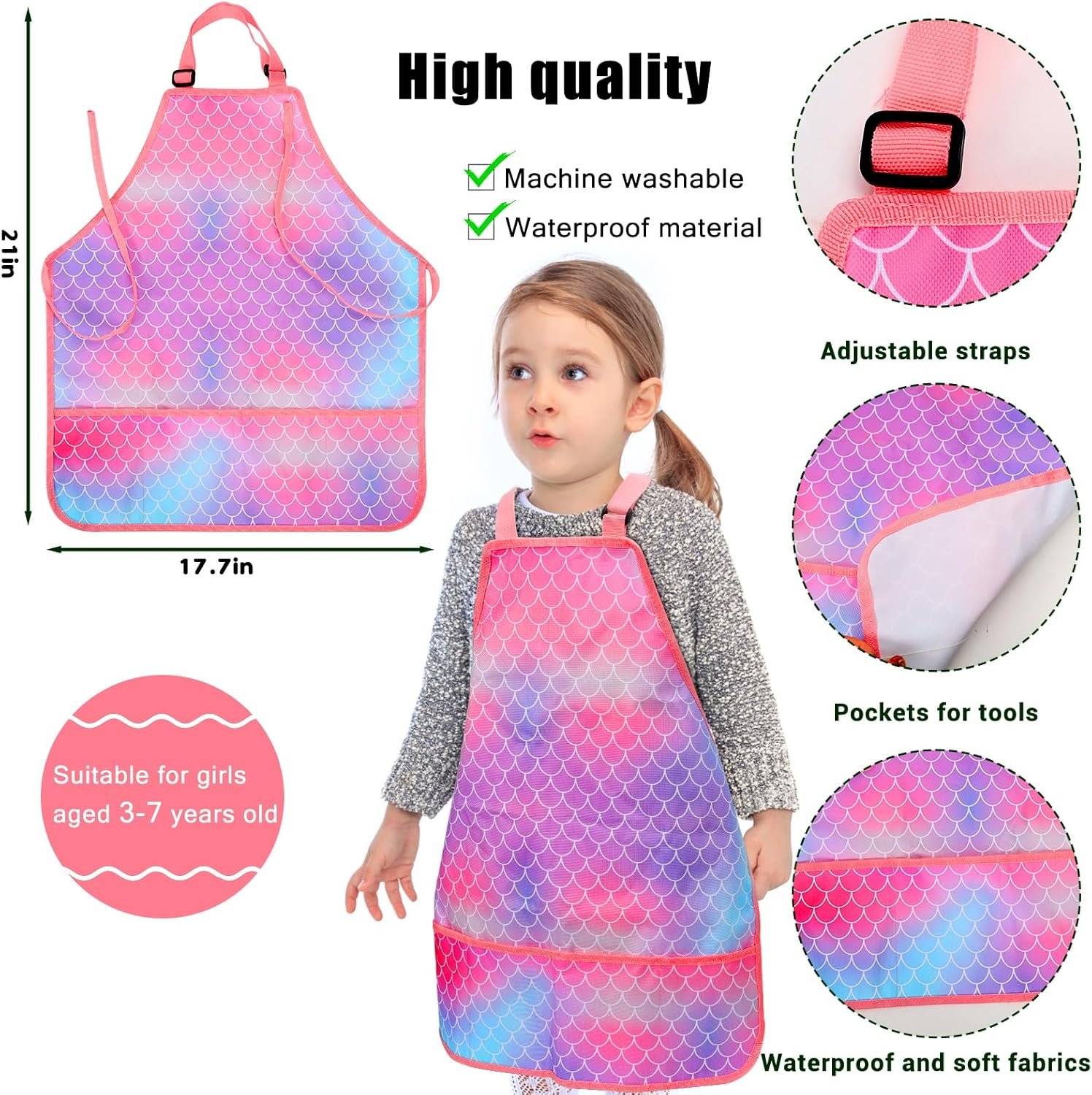 Lovely waterproof material:The outer-layer of the tote bags and apron is made of waterproof material with attractive pattern design, comfortable to wearing, convenient for girls in outdoor activities without dirtying clothes!Bags with multiple pockets keeping tools organized.