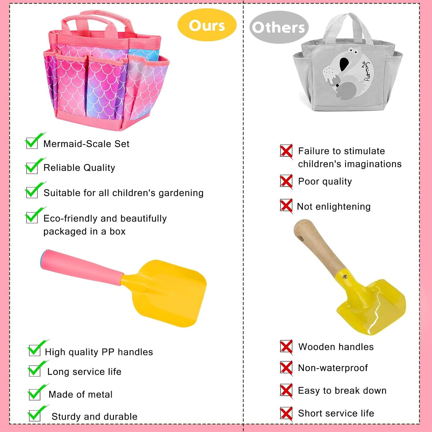 Great garden toys gifts:This cute garden tool provides convenience for girls to garden outdoors, enjoy enjoyable role-playing times, promoting parent-child relationships, and is the perfect gifts for girls who enjoy playing in the yards or outdoors.