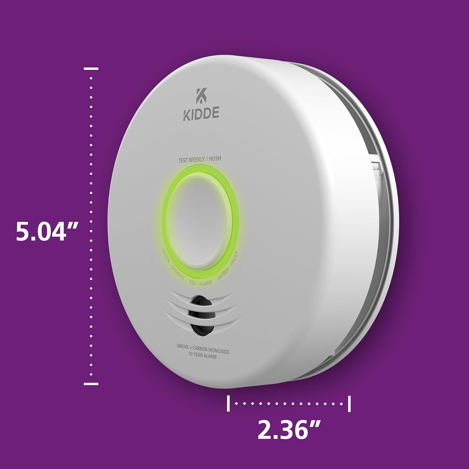Test-Hush Button easily tests the working operation of the smoke alarm & silences false alarms; the Kidde app can also be used to test the smoke & CO combo alarm