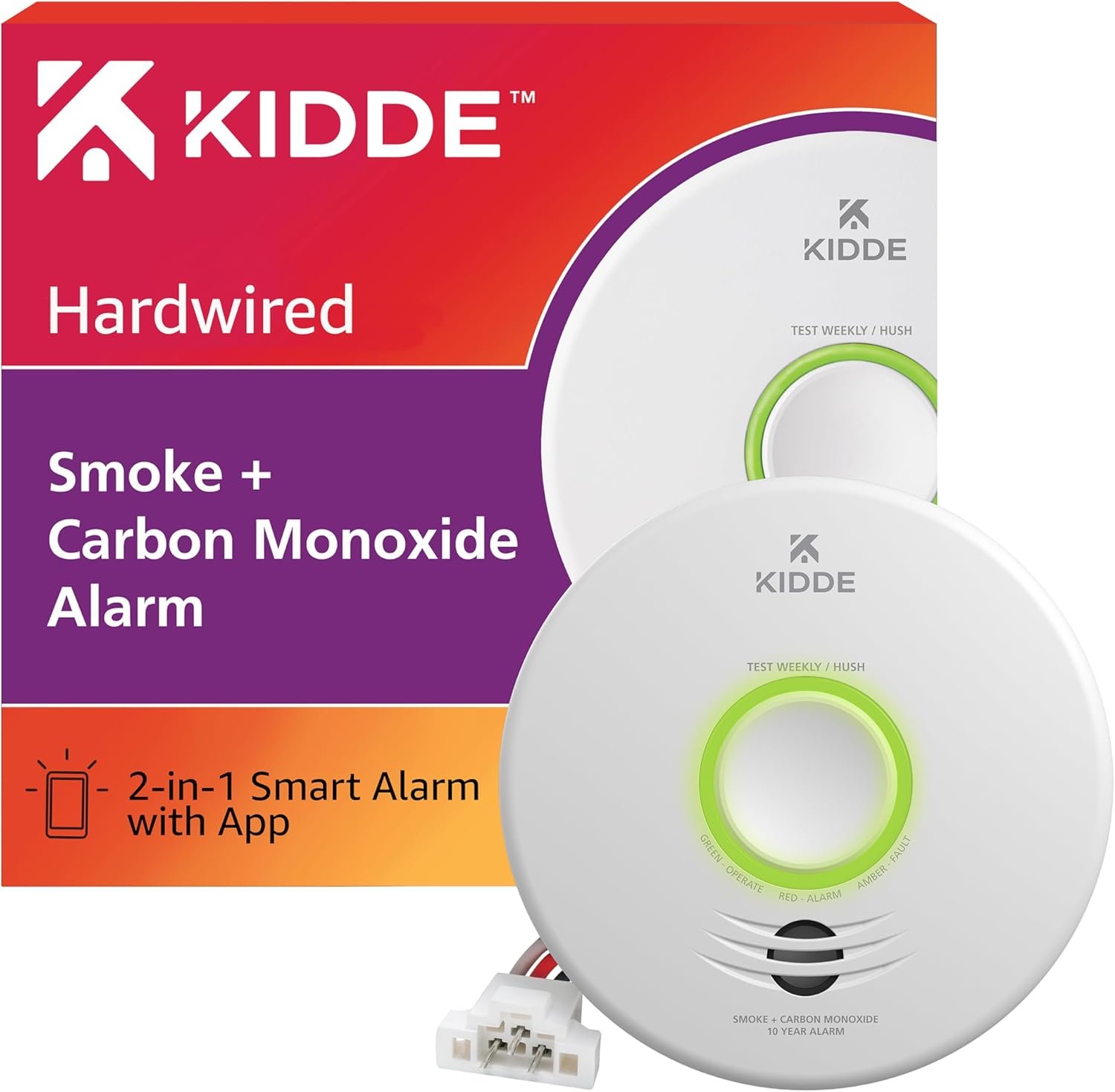 Kidde Smart Smoke & Carbon Monoxide Detector, WiFi, Alexa Compatible Device, Hardwired w/Battery Backup, Voice & App Alerts