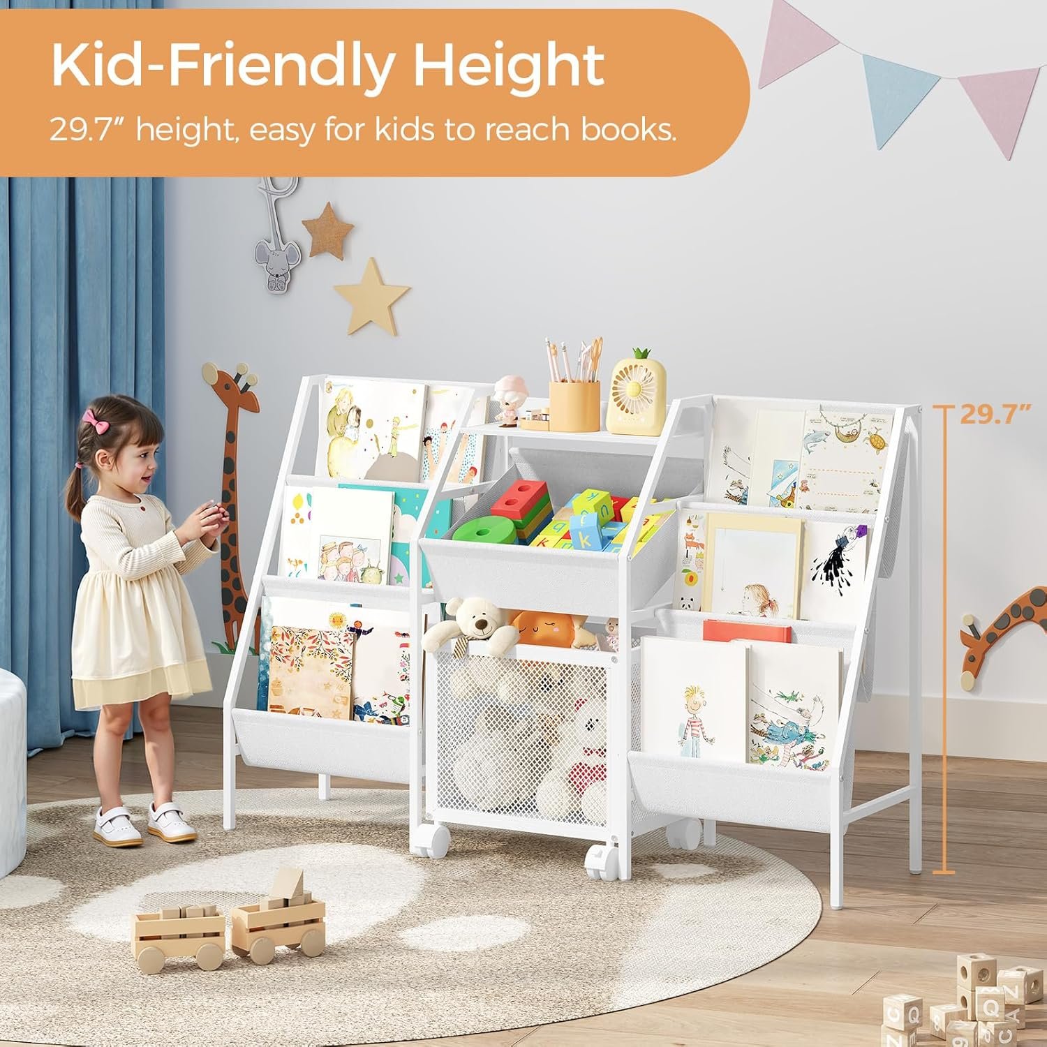 Stores and displays more picture books, easy for kids to reach and organize.