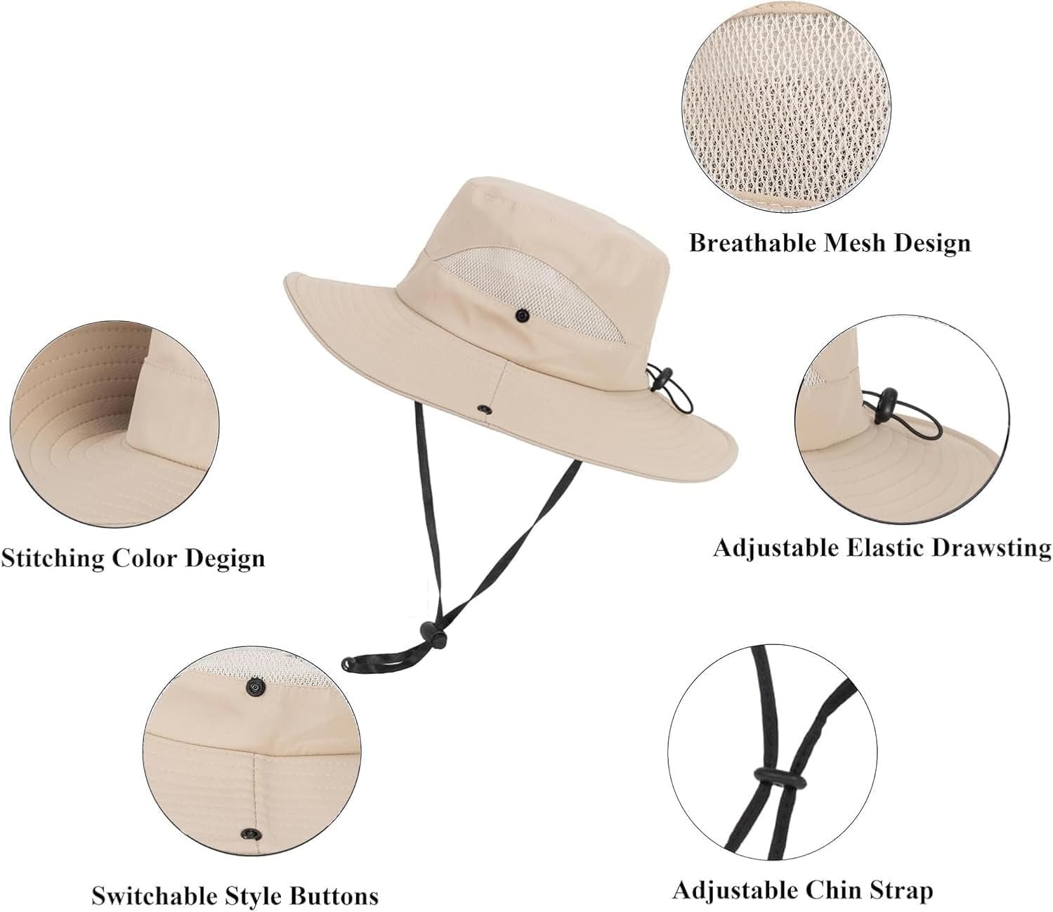 Kids-Breathable-Mesh-Bucket-Hat Wide Brim UV Protection Summer Outdoor Fishing Beach Sun Hat for Boys Girls 5-9 Years