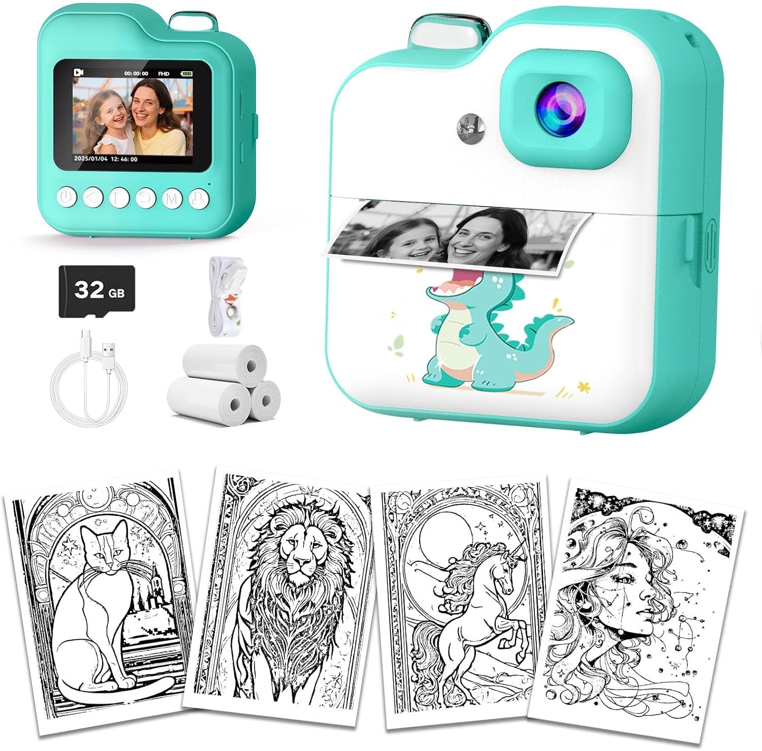 Upgraded Instant Print Camera – Kids can take photos and print them instantly with the kids camera! Parents can easily print favorite photos in gallery via Bluetooth too! Let’s turn those precious moments into real keepsakes with our instant camera!