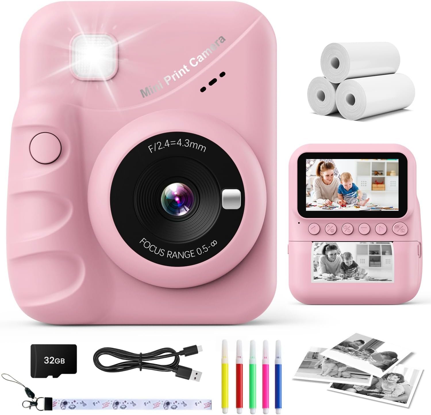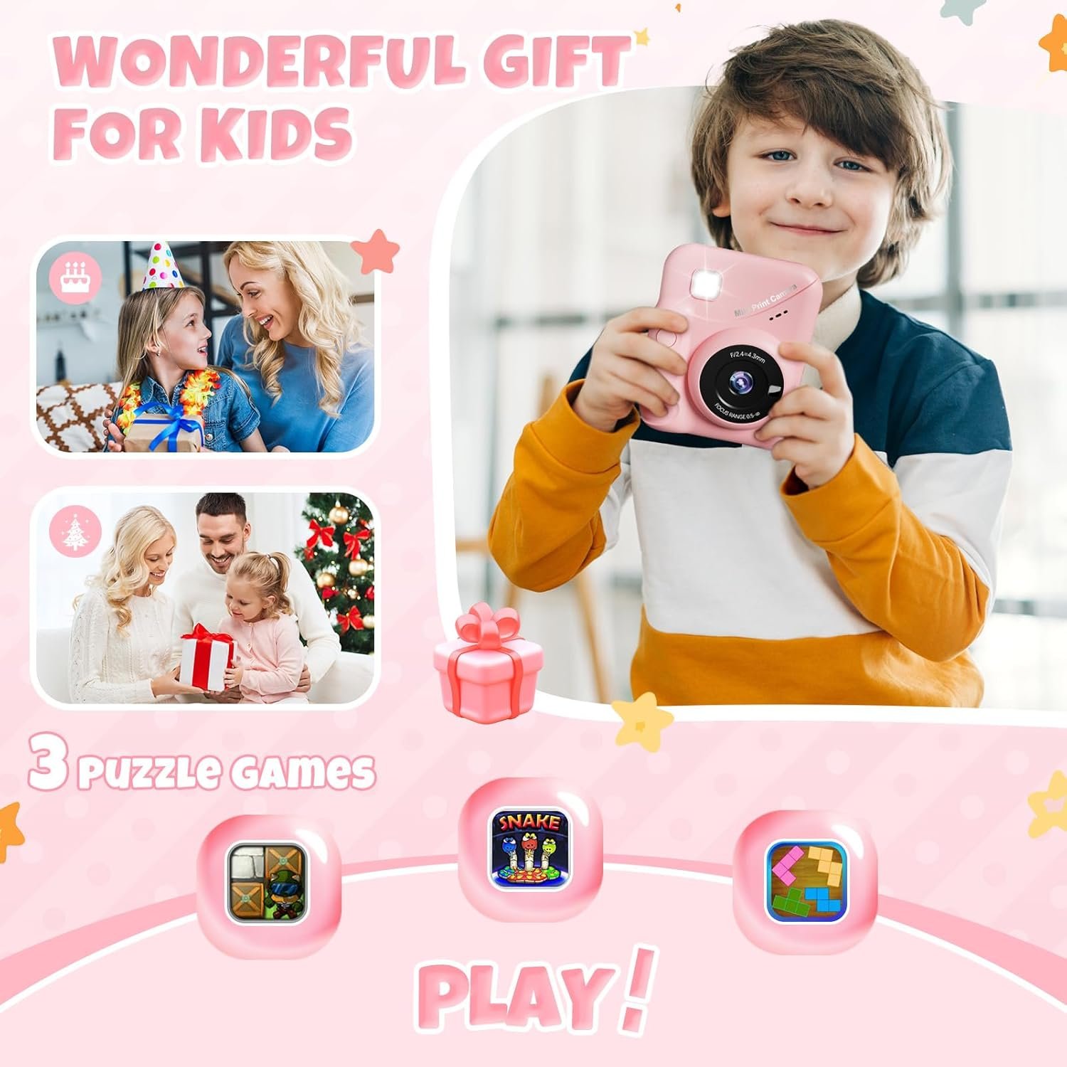 Kids Camera Instant Print, 3.0” Screen 48MP Photo Instant Camera for Kids with 32GB Card, 1080P HD Digital Child Printable Camera, Gift for 3-12 Year Old Girls Boys (Pink)