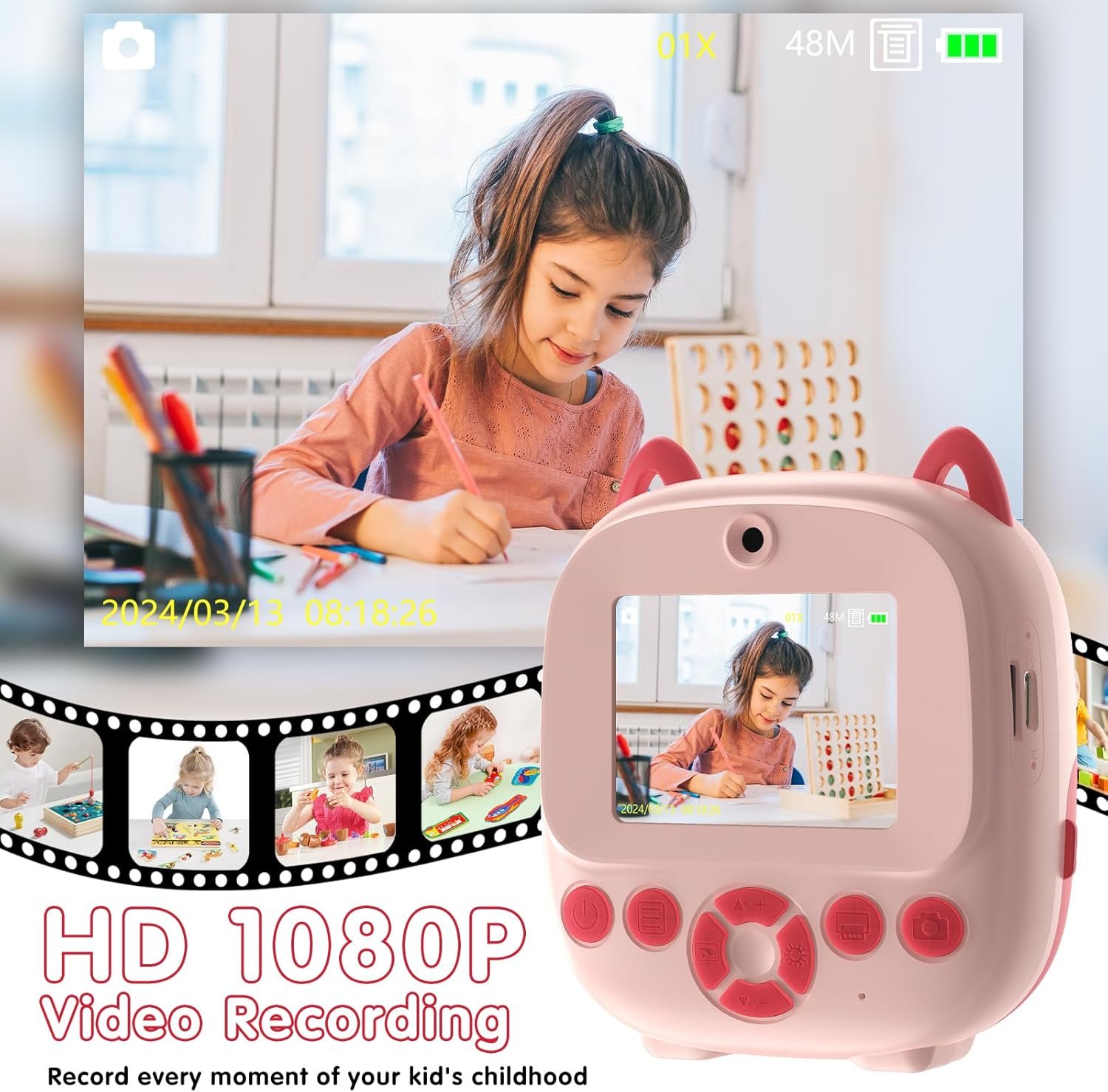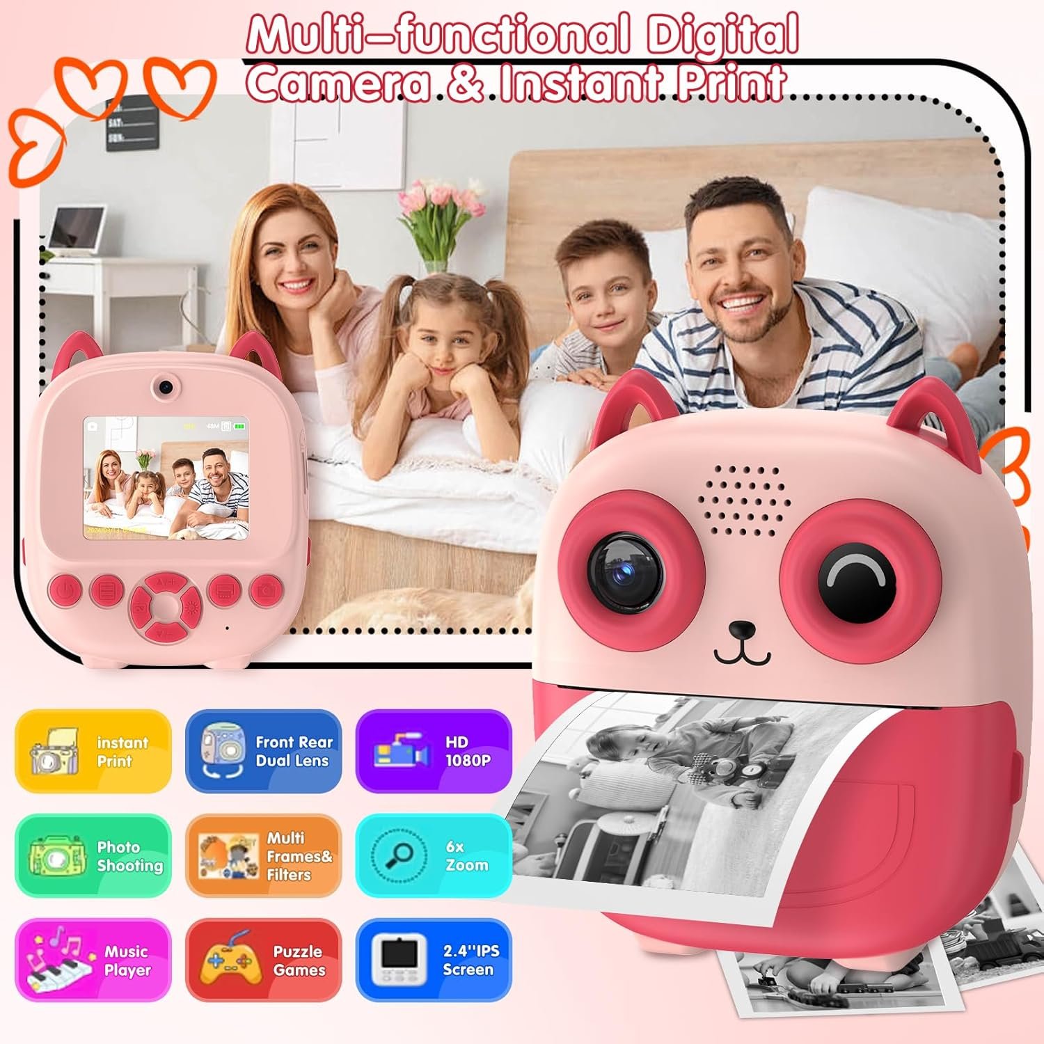 Kids Camera Instant Print, Multifunctional Toddler Camera with Photo Printing Instantly, 2.4 Inch HD Screen Digital Camera for Kids,Christmas Birthday Gifts for 3-12 Year Old Girls(Pink)