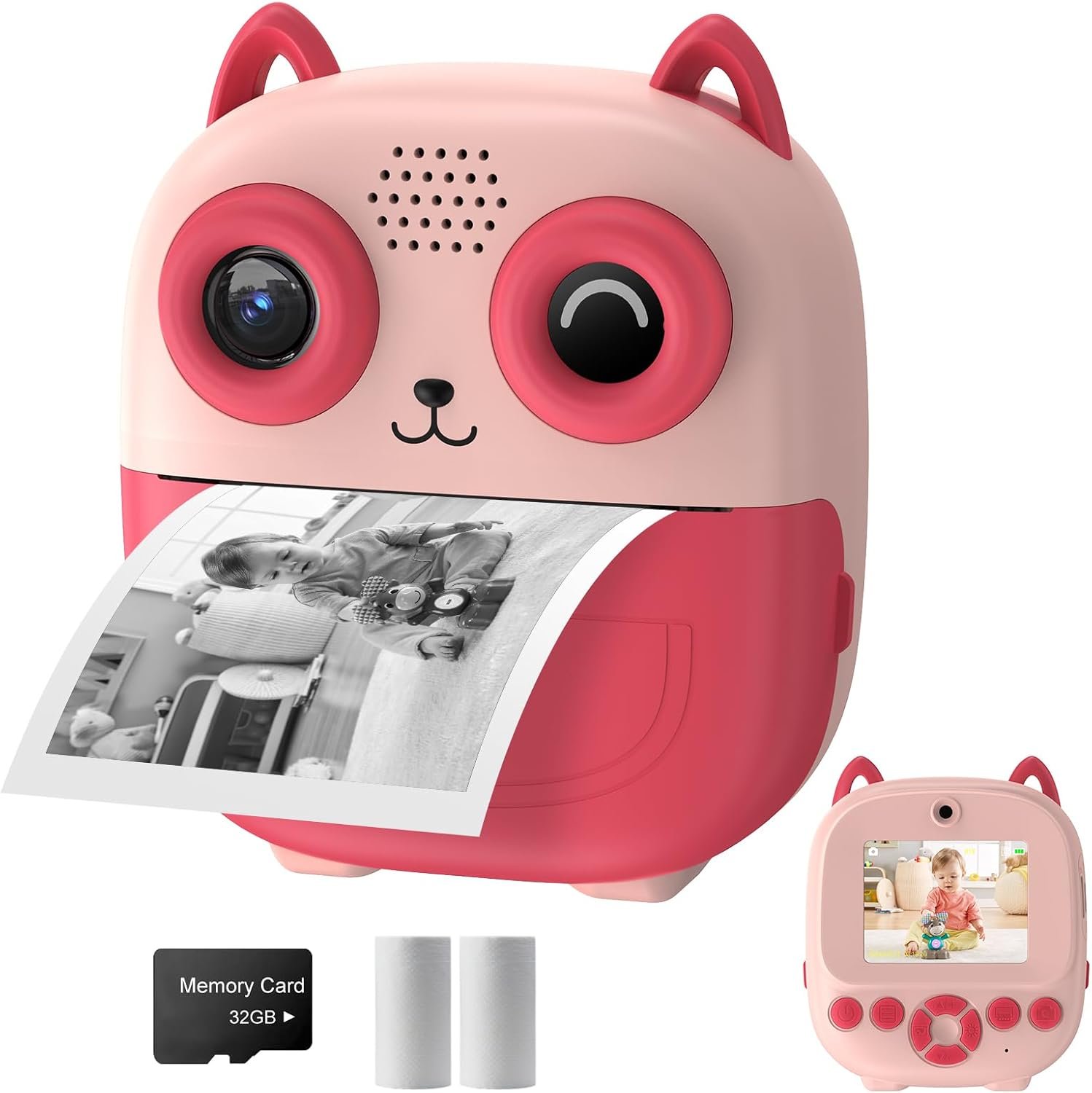 Creative Instant Camera for Kids: Camera with instant pictures capture colorful photos and quickly print black-and-white images. Children can add their favorite colors or doodles to the printed photos and save them.The instant cameras that print photos greatly stimulates children’s imagination and creativity. With 32GB of storage, Take photos without worrying about running out of space and printing paper. This camera that prints pictures instantly lets you capture and print without any hassle.