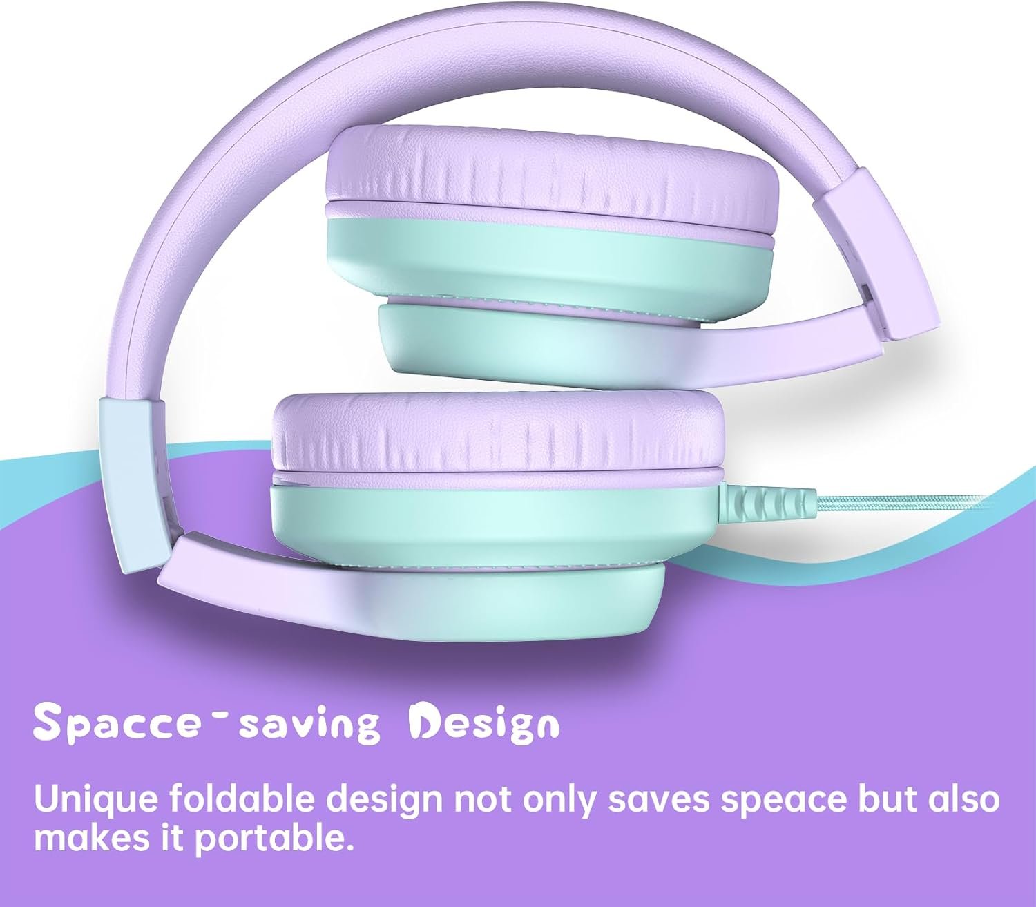 Kids Headphones, Wired Headphones for Kids Over Ear with Microphone, 85/94dB Volume Limiter Headphone for Girls Boys, Foldable Headphone for Learning & Entertainment,Gradient Purple