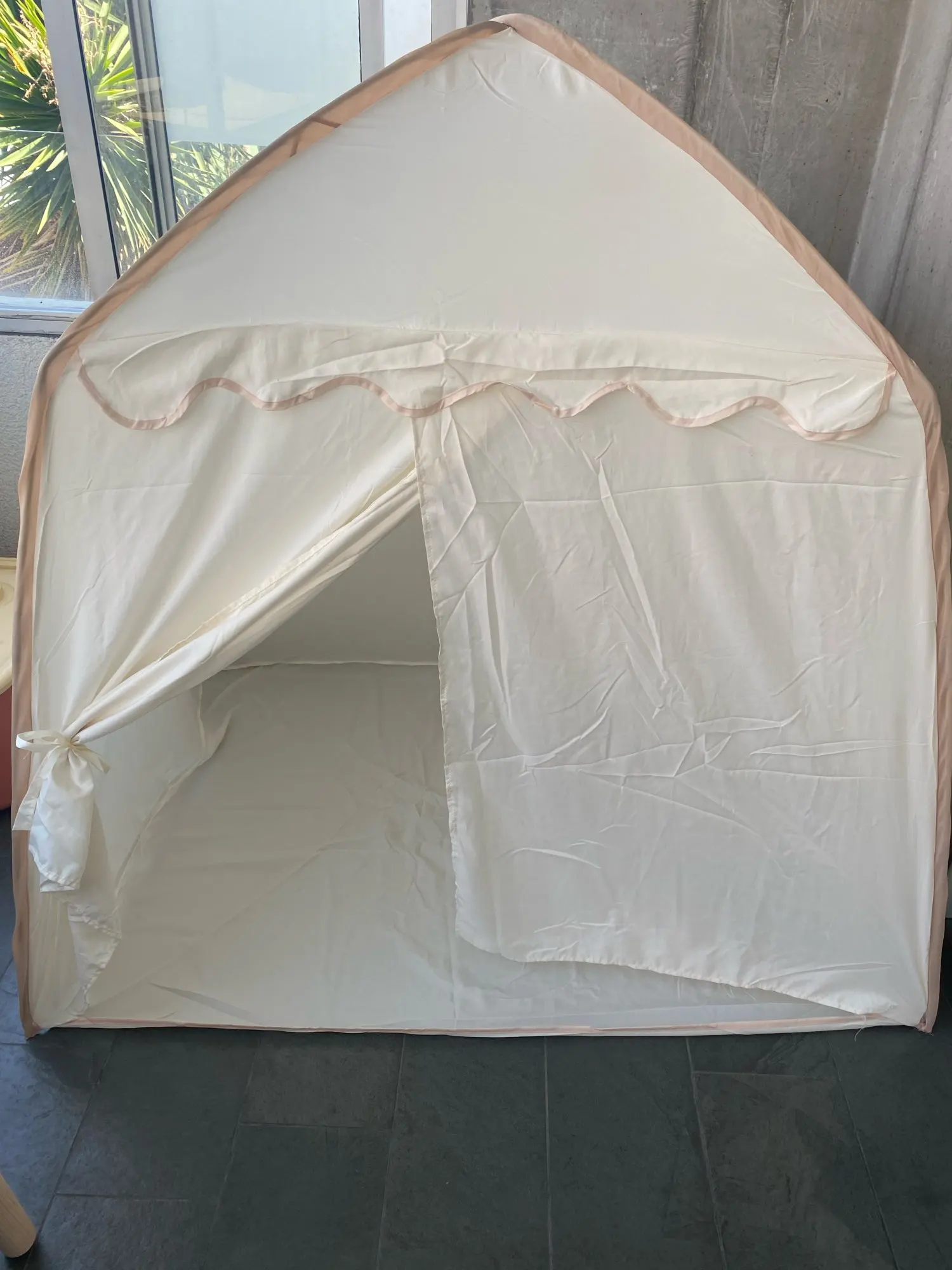 The tent is very cute and easy to set up, ideal for kids to play and have fun. However, the material is quite lightweight, so I recommend using it only indoors or outdoors without wind. Nevertheless, it serves its function well as a playhouse.