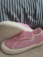 Exactly as described in the product description. Nice shoes, soft, flexible. Just right for kindergarten. According to the size provided on the website. I recommend.