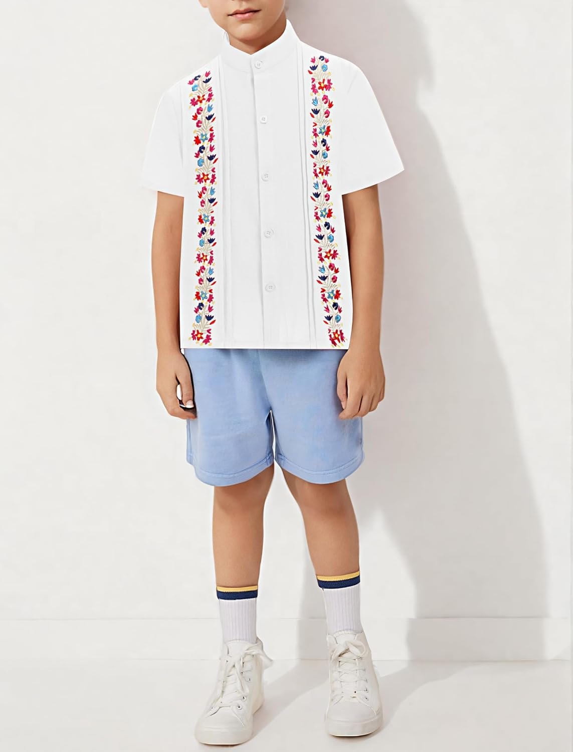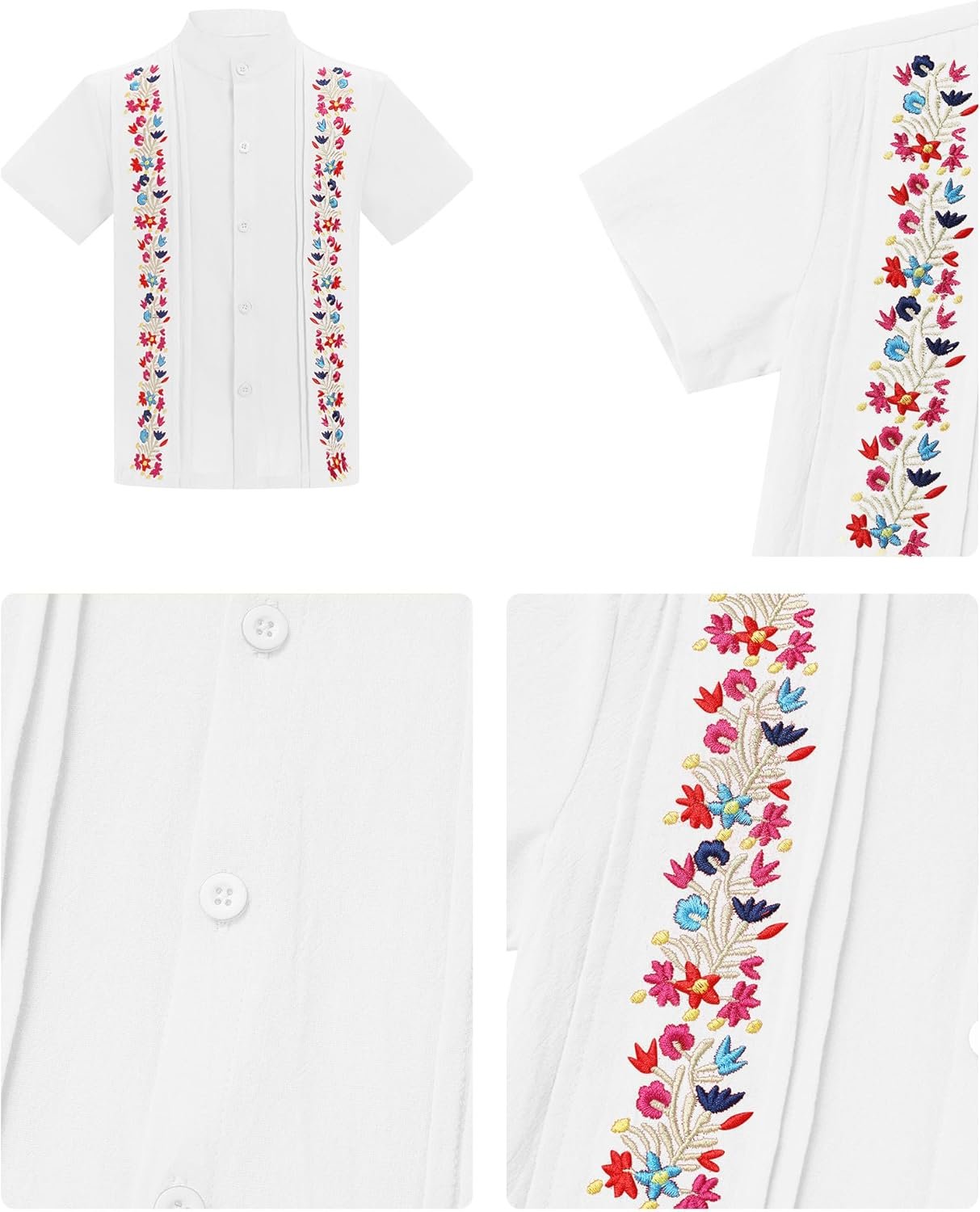 Kids Toddler Boys Mexican Guayabera Shirt Short Sleeve Button Down Embroidered Traditional Folk Shirts Summer