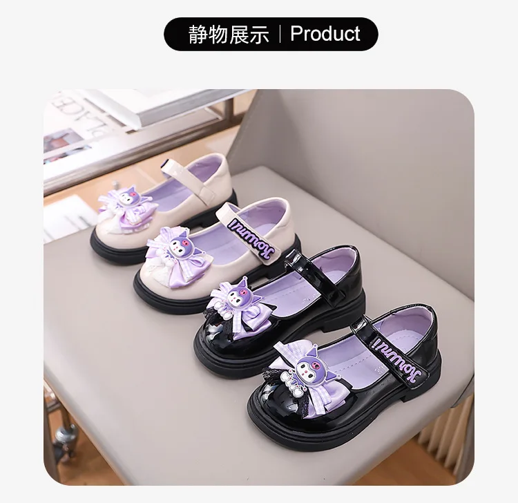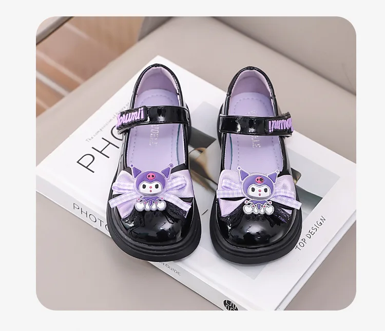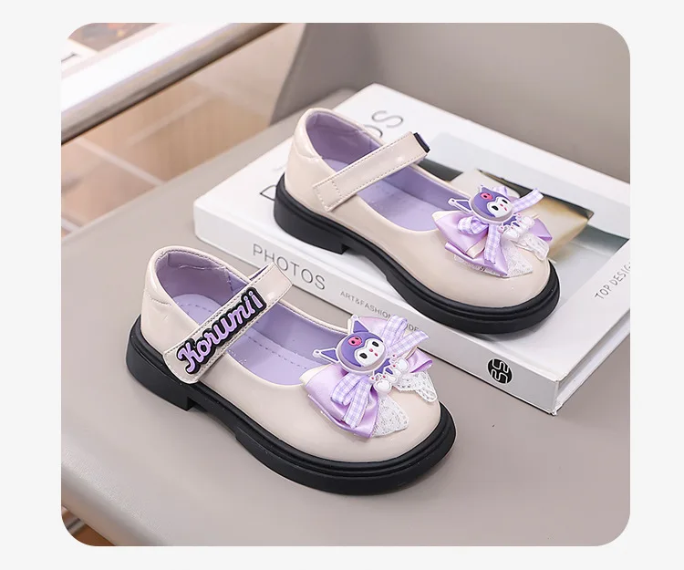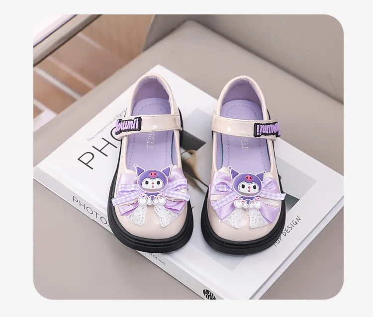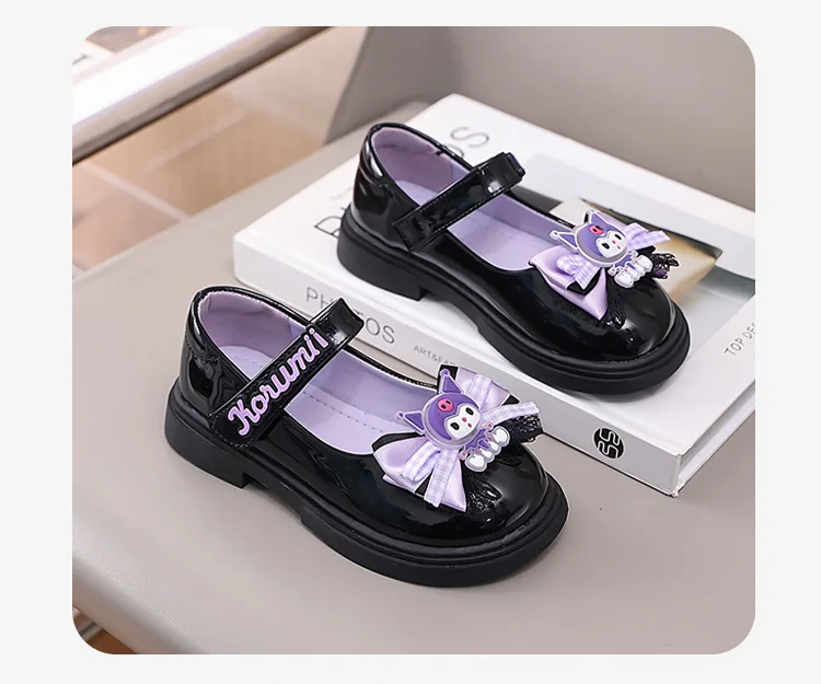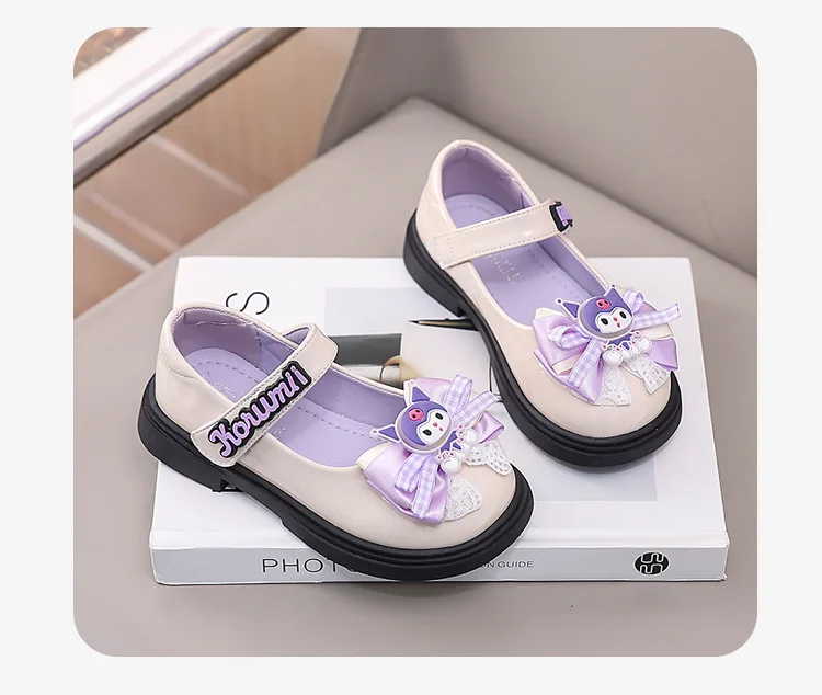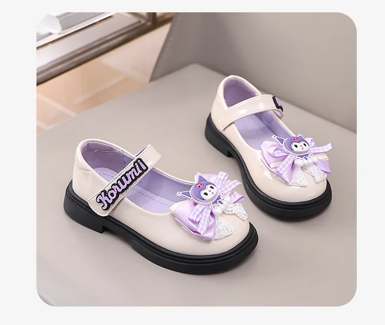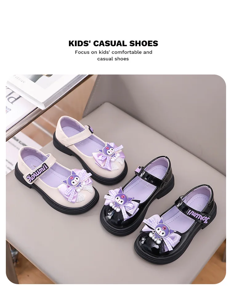 2 reviews for Kids’Sandals Kuromi PU Leather Bow Flat Spring Shoes For Girls Anti-slip Soft Thick Bottom White Black Shoes Size 26-36