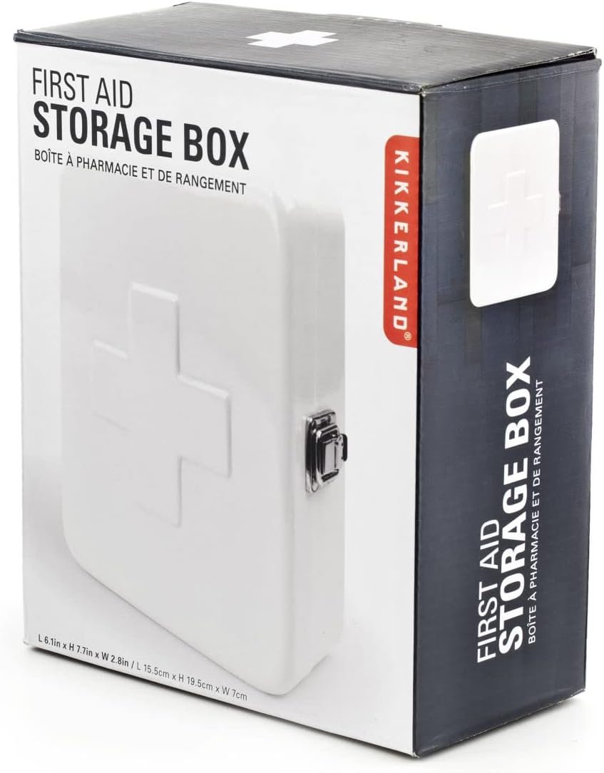 Kikkerland Empty Steel First Aid Kit Case – Multi-Purpose Medical Supply Organizer – Portable First Aid for Home, Office, & Travel, White