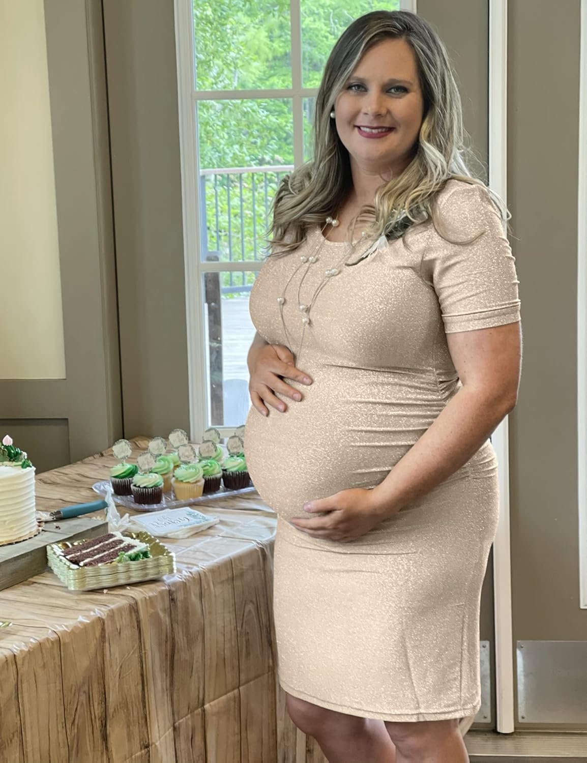 KIM S Glitter Maternity Dress Photoshoot Bodycon Dresses for Baby Shower or Daily Wear