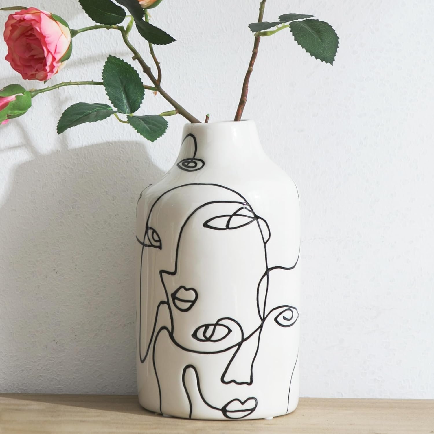 Abstract Ceramic Vase – This Picasso-style vase features a special design style with vivid face lines. Made with high-quality ceramic, it can be used as a decorative piece in your living room, matching well with exotic houseplants, winter florals, shelf decor, floor table decorations, fall decor, fireplace decor, and entry table decor. Despite its size and simple design, it is a pretty handy ceramic decor.