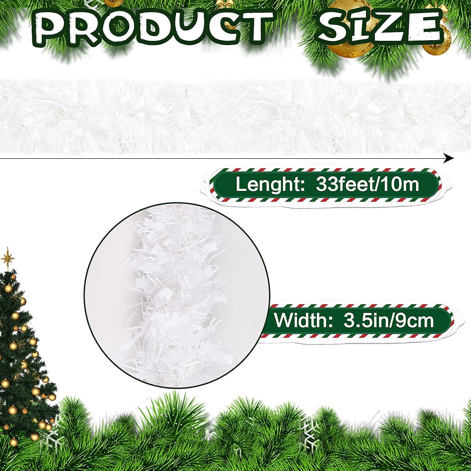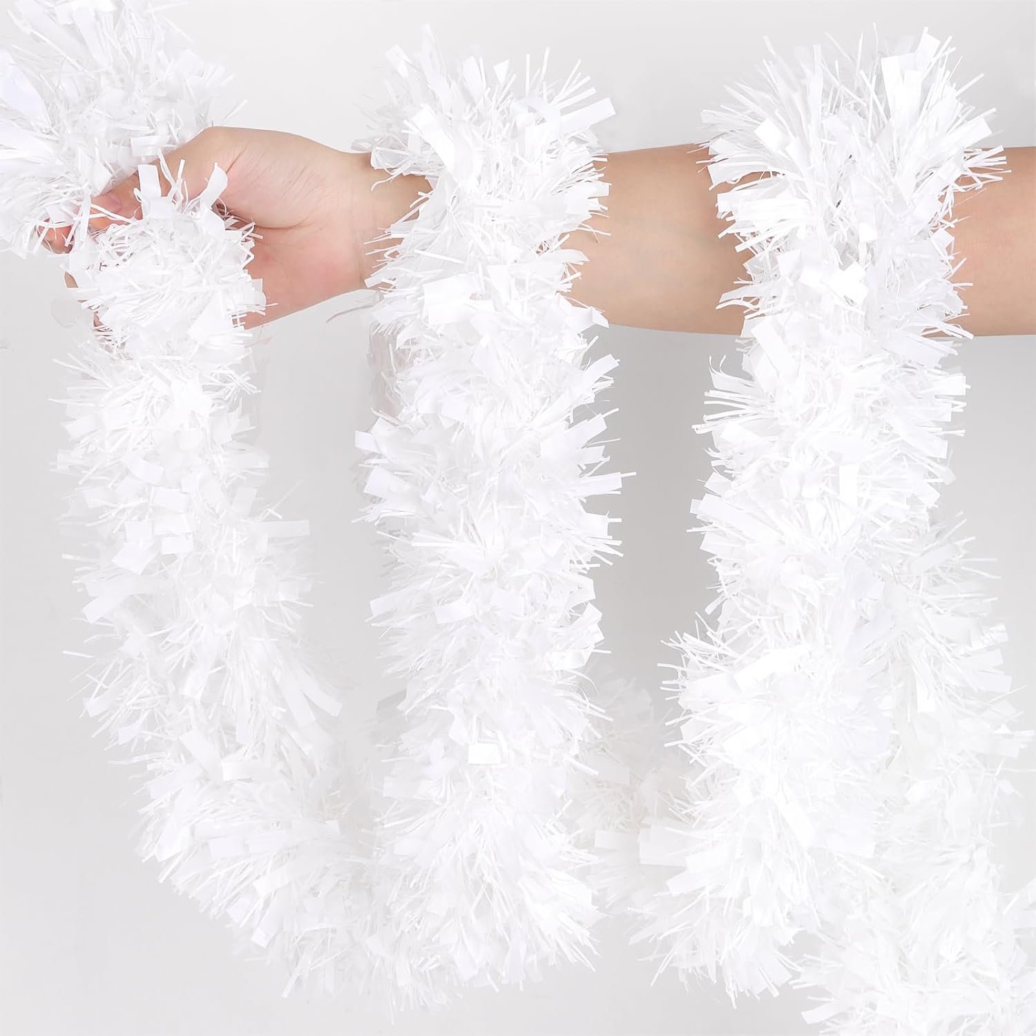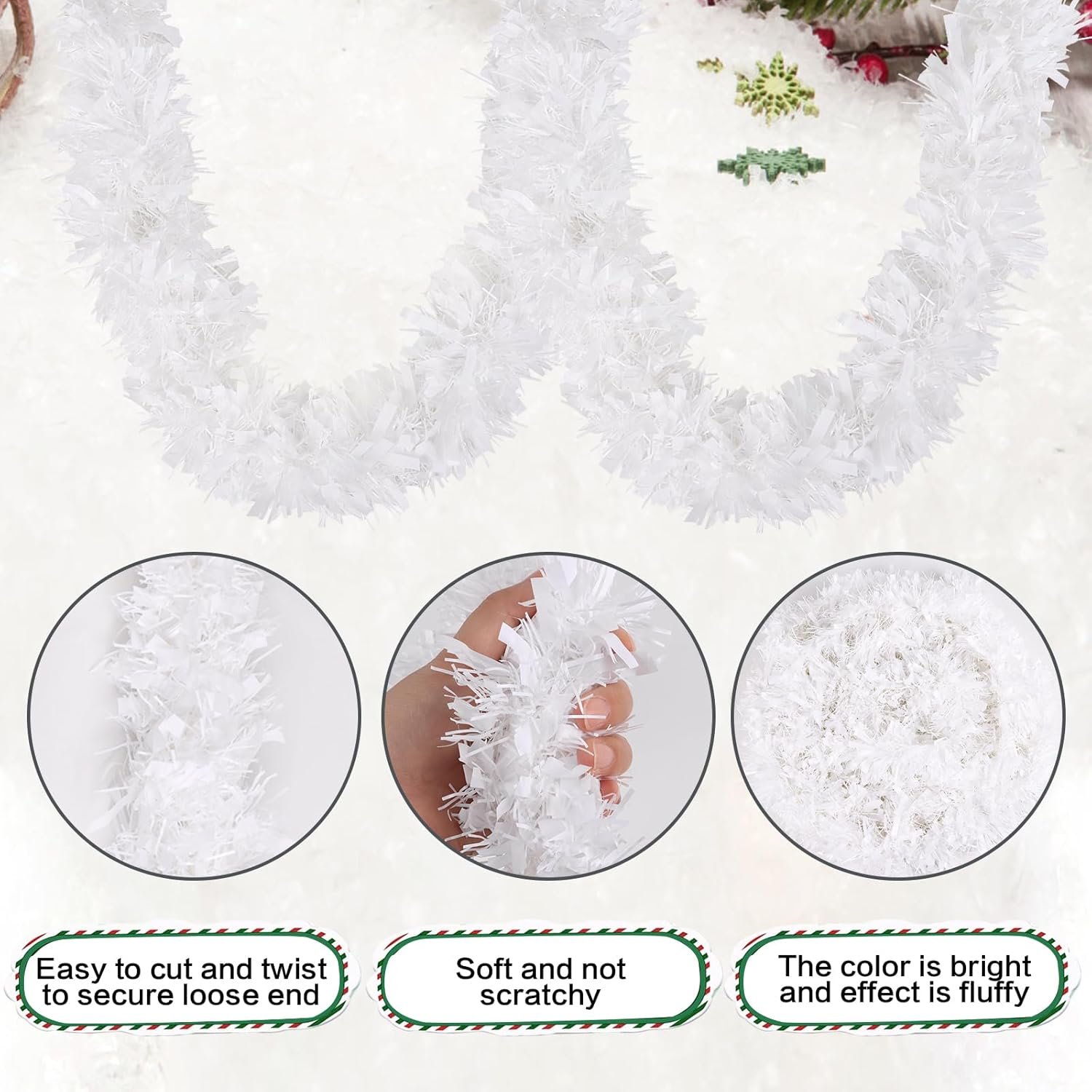 Bright Party Decor: The white tinsel garland is made of different widths of white metal foil,which will reflect light under sunlight and light.Use our artificial garland to add lglamor to Christmas party decoration and create winter ambience to your home.