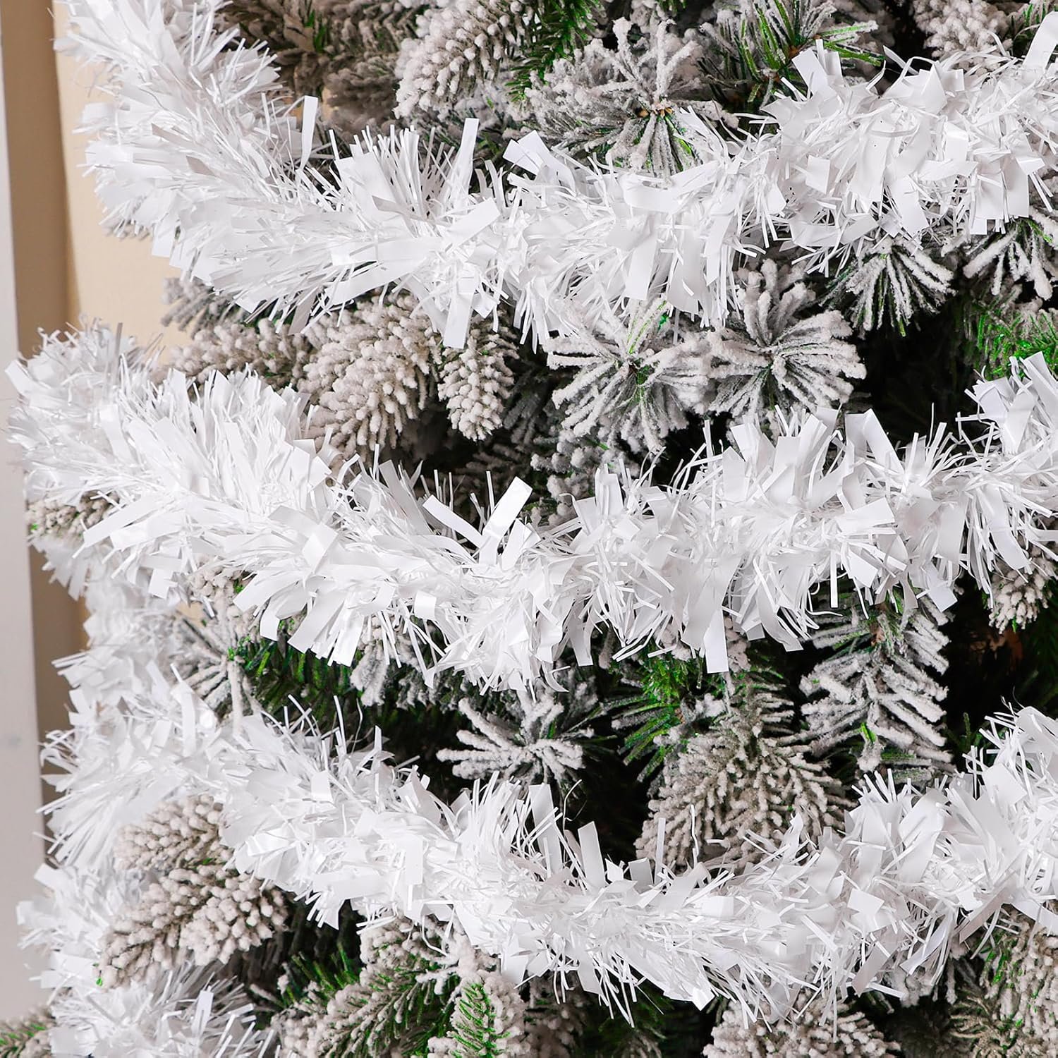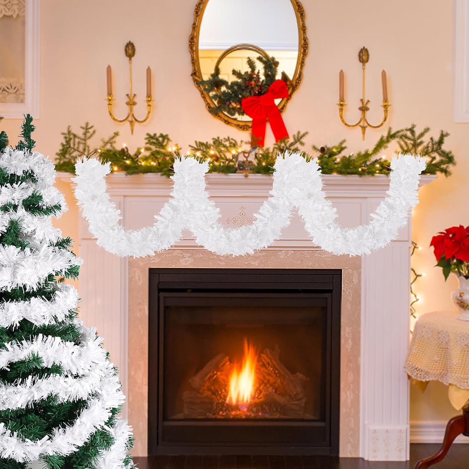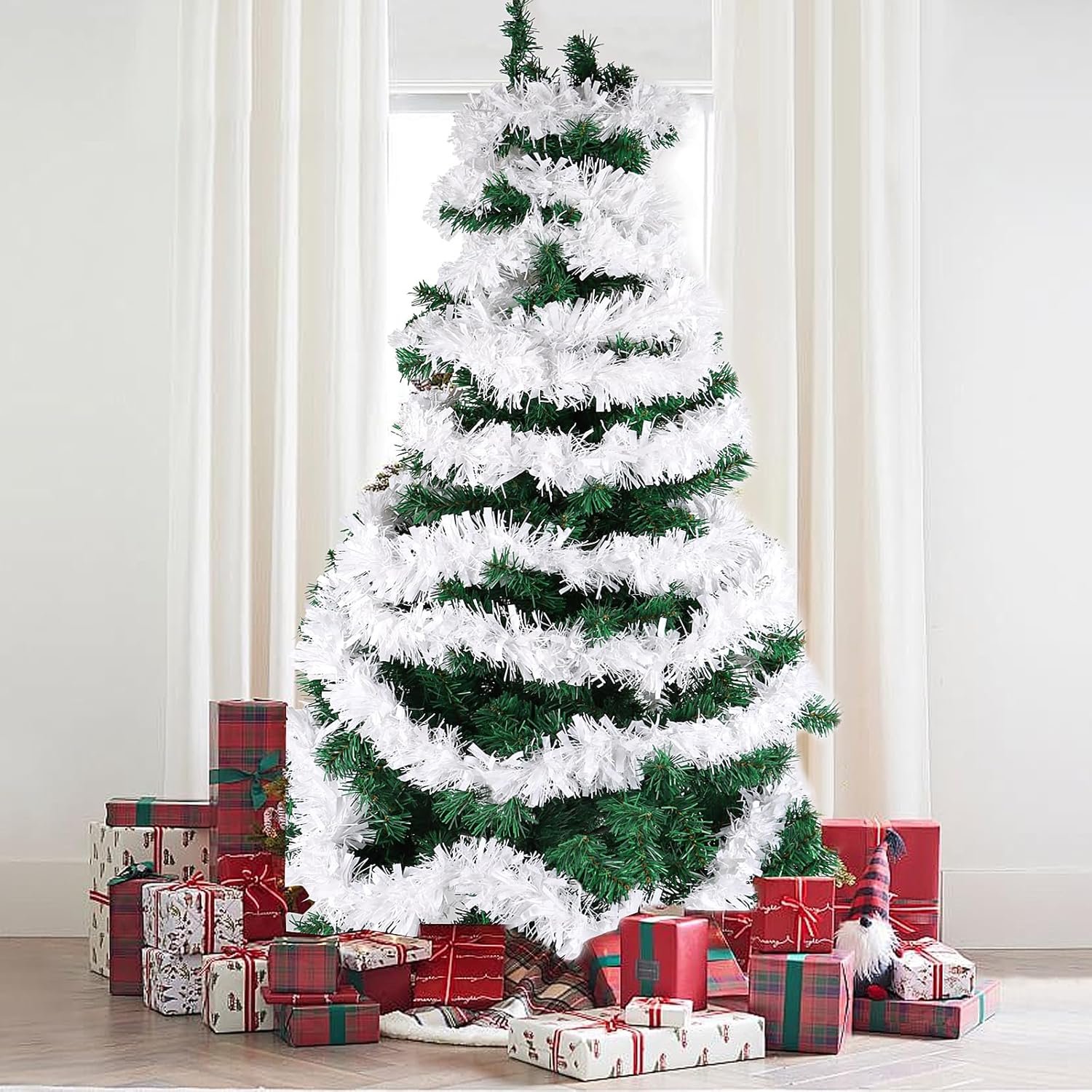 Bright Party Decor: The white tinsel garland is made of different widths of white metal foil,which will reflect light under sunlight and light.Use our artificial garland to add lglamor to Christmas party decoration and create winter ambience to your home.