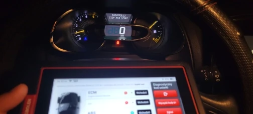 The Clio display shows a start-stop problem and this is also signaled by the car’s computer on the display.