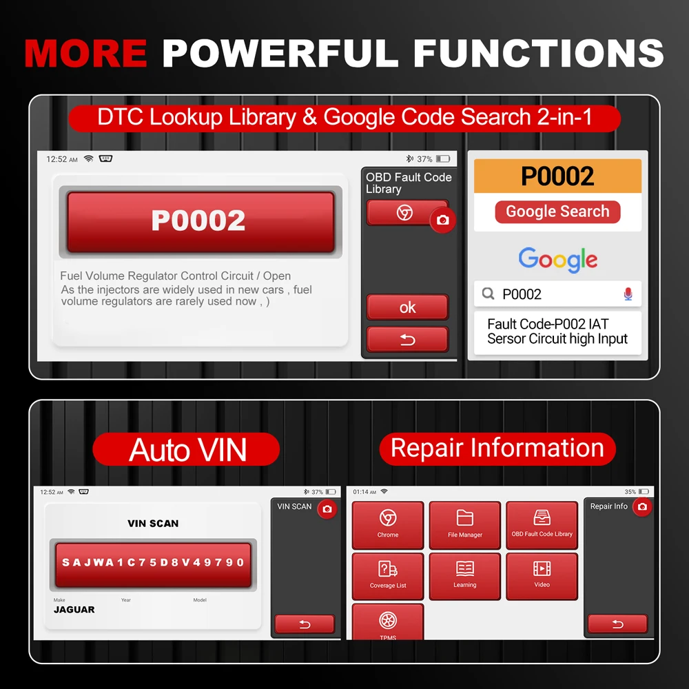 KINGBOLEN S6 has a separate DTC database, which supports the independent fault code query function. At the same time, the device has a “Google Chrome” browser. If you encounter an unclear DTC code, it is convenient to query the DTC.