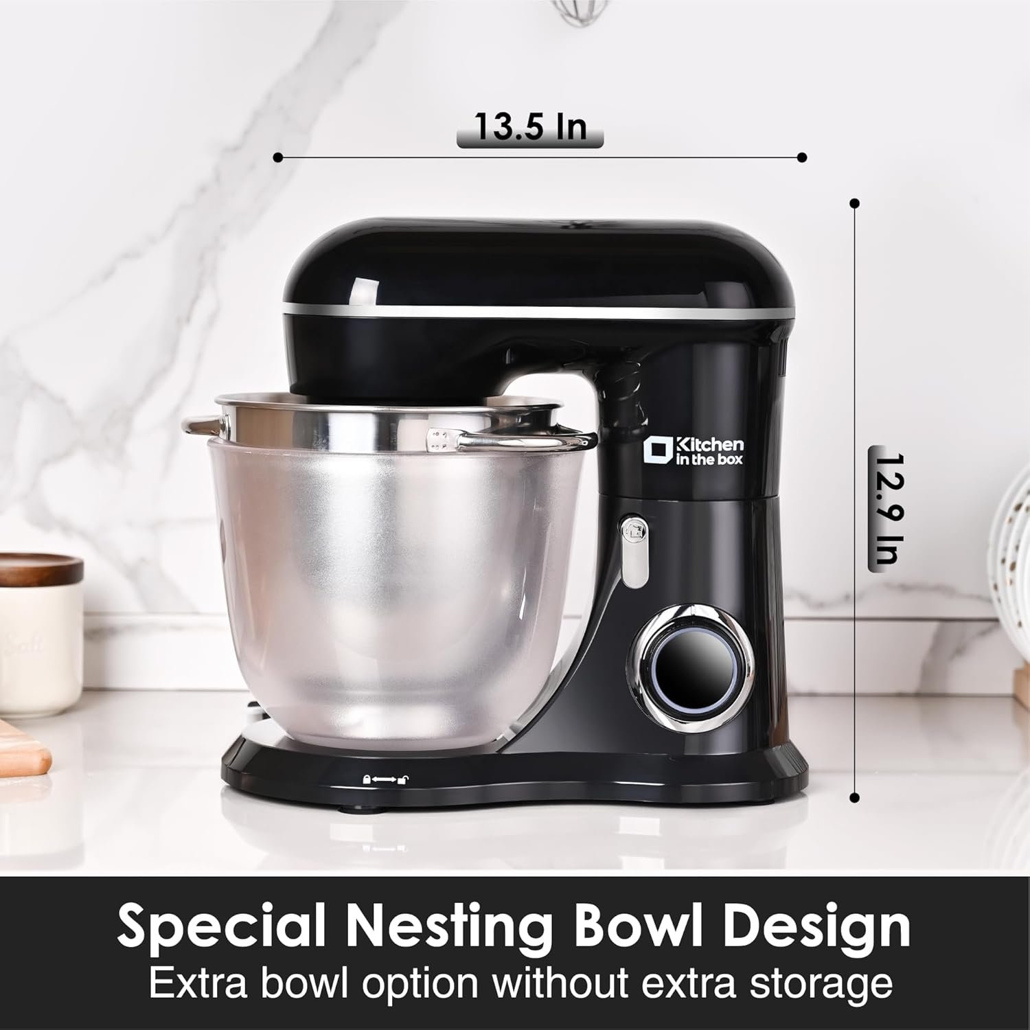 Kitchen in the box Stand Mixer, 5QT Two bowls Electric Food Mixer, 10 Speeds 3-IN-1 Kitchen Mixer for Daily Use with Egg Whisk,Dough Hook,Flat Beater (Black, 5QT)