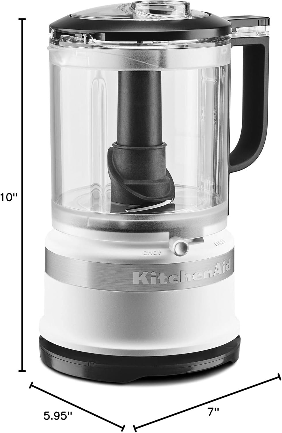 This compact and lightweight 5 Cup Food Chopper is ideal for everyday use and offers endless fresh options to quickly chop, whip, mix and puree – whether you want to eat healthier, be more creative, or just save time on meal prep. Easily chop fresh fruits and vegetables, whip up butter or whipped cream, mince parsley, chives, or garlic, all for easy preparation in your favorite recipes. You can even purée cooked fruit or vegetables to make baby food, or to use as bases for soups or sauces. The drizzle basin is great for making mayonnaise, dressings, sauces and other condiments.
