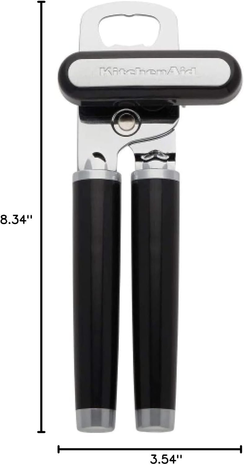 KitchenAid Classic Multifunction Can Opener and Bottle Opener Easy to Use, Razor Sharp Stainless Steel Cutting Wheel, Soft Ergonomic Handles, Black