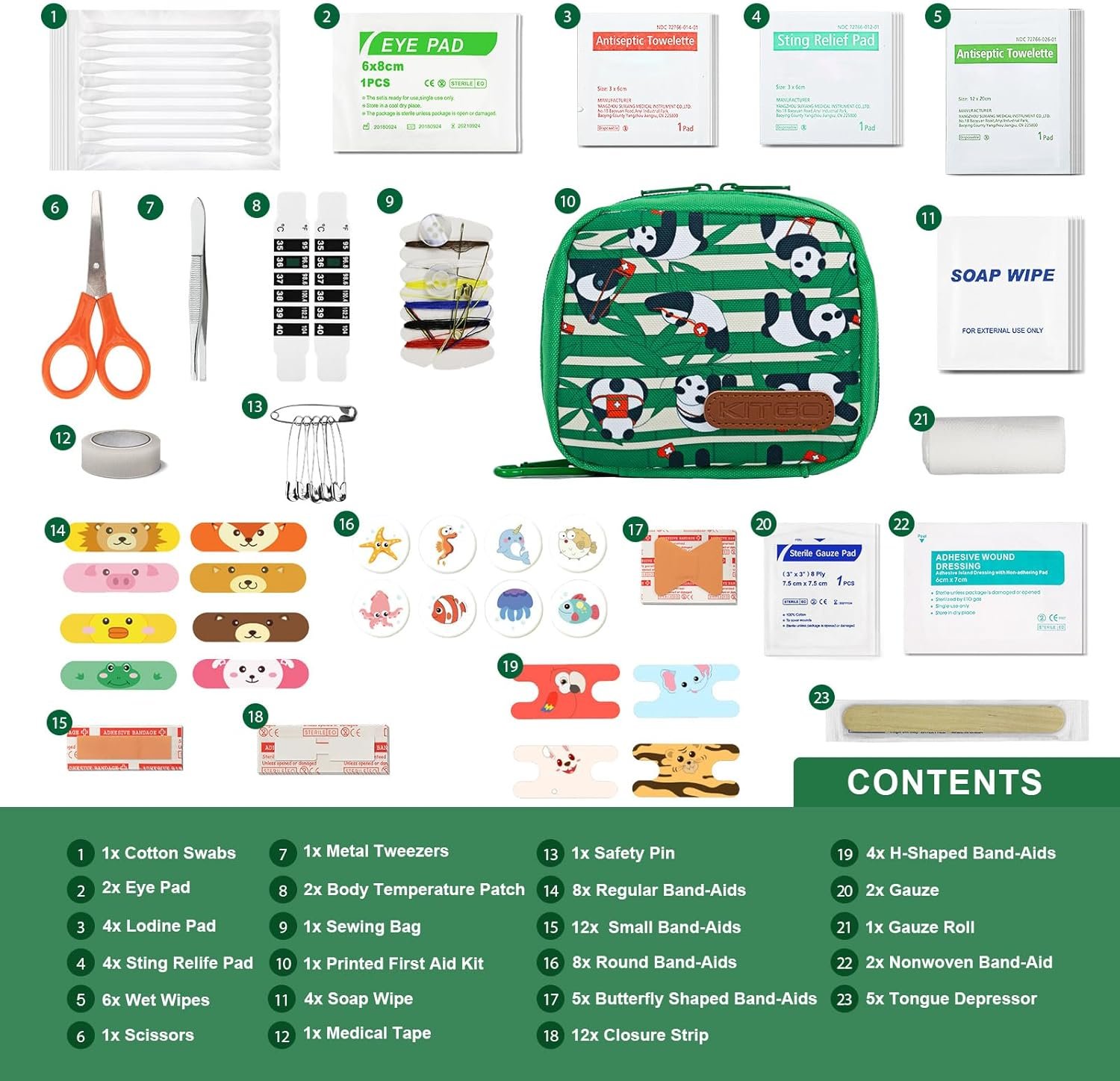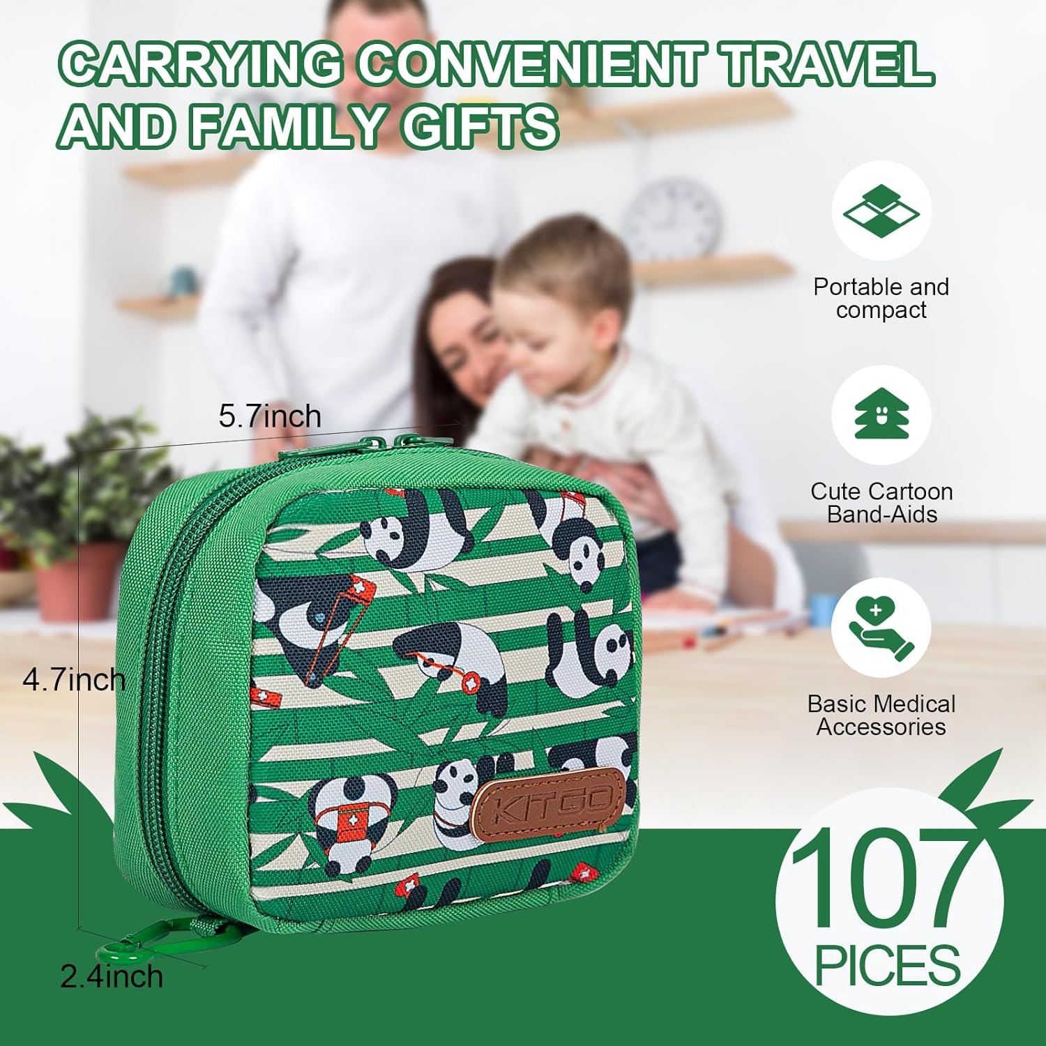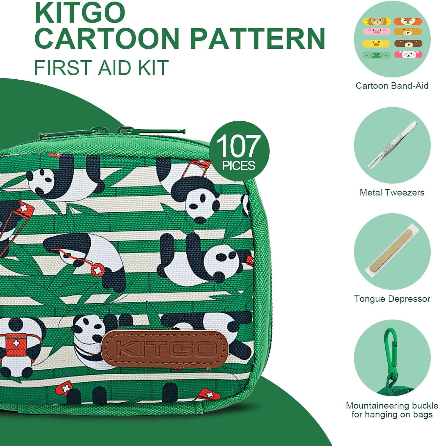Kitgo 107-Piece Small First Aid Kit for Kids – Baby Travel First Aid Kit with Fun Bandages for Car, Home, Travel, Backpack, Green