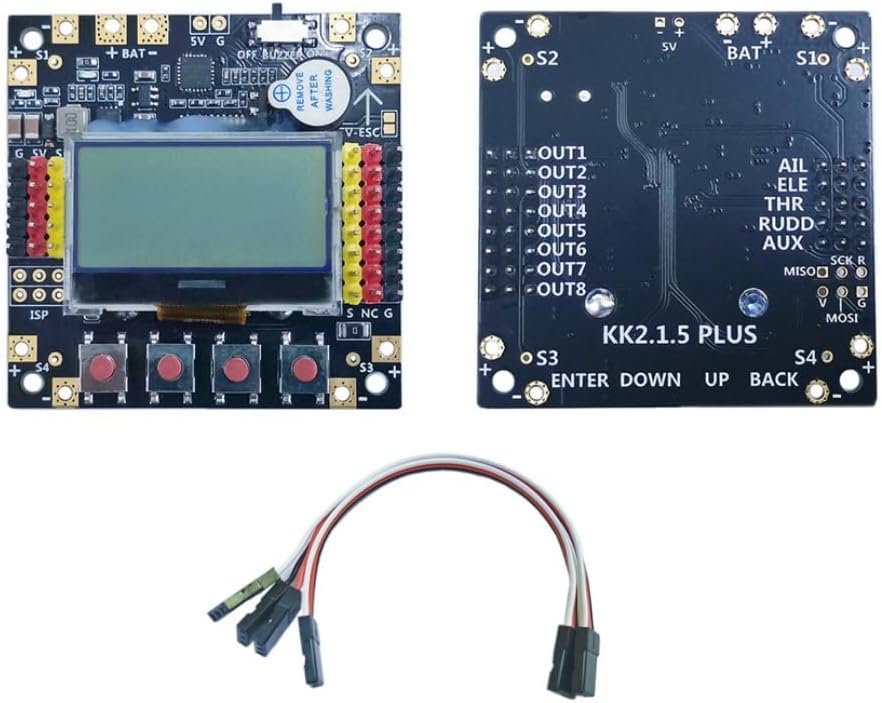 KK2.1.5 PLUS Flight Controller Board with LCD Display, Integrated PDB & Buzzer, Multi-Rotor Fixed-Wing VTOL Support, for RC Drones, Quads, Airplanes, DIY FPV Projects