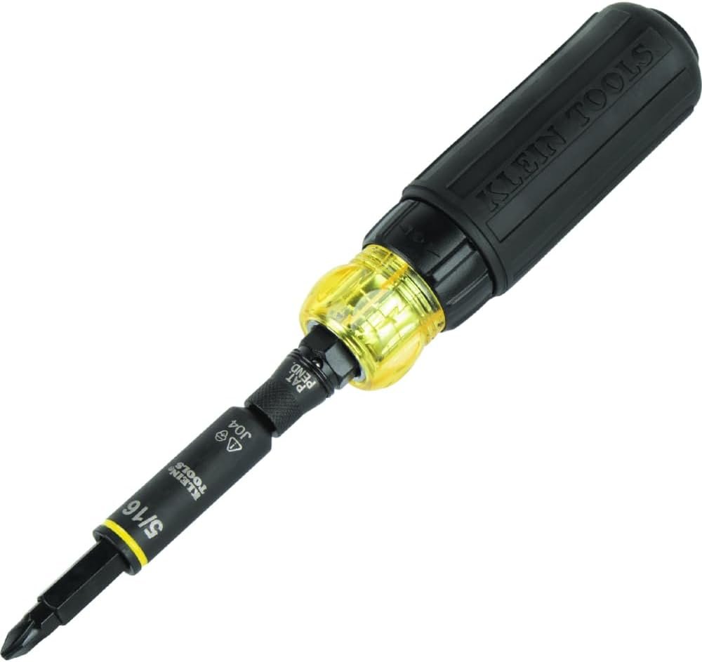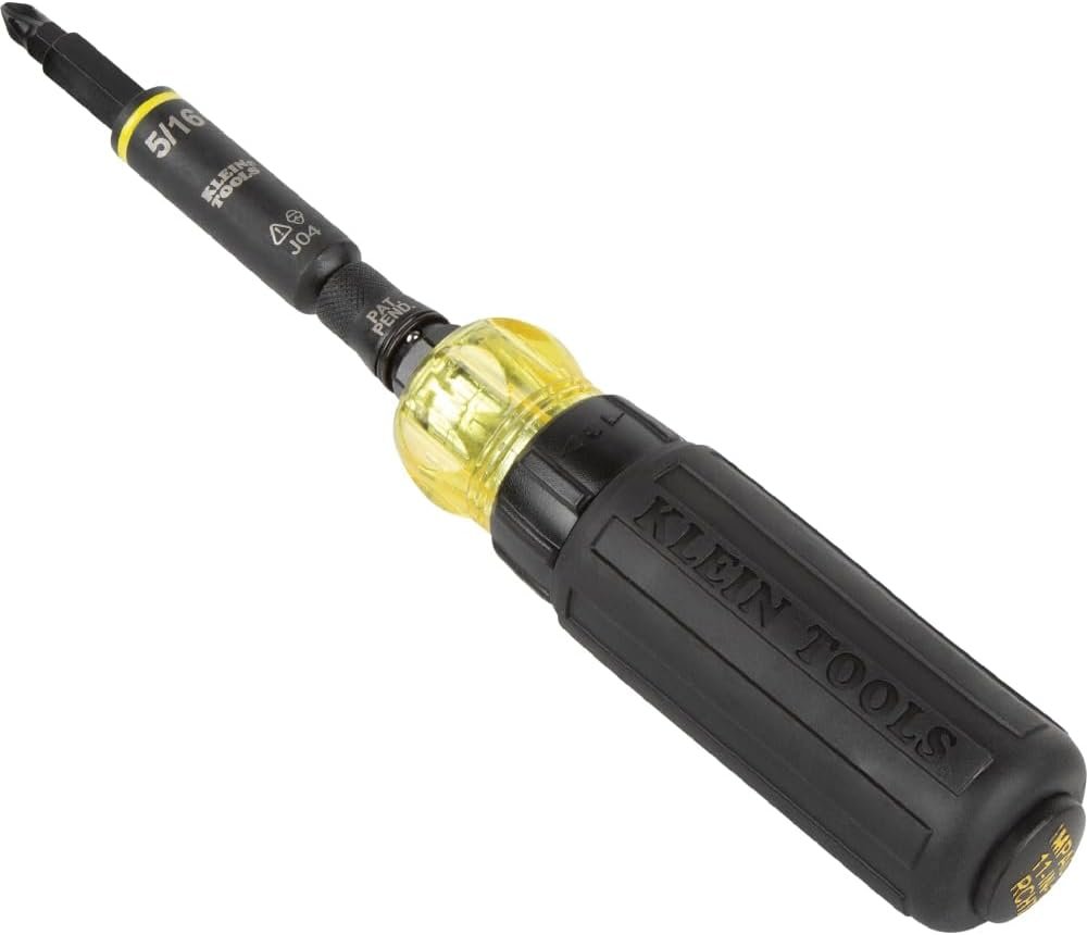 The Klein Tools 11-in-1 Ratcheting Impact Rated Screwdriver / Nut Driver’s components are all impact rated for use with an impact driver. 1/4-Inch quick-connect on power nut drivers to easily switch from screwdriver handle to an impact driver (Impact driver not included). Ratcheting feature has three settings: forward, fixed, and reverse, facilitating easier driving. For more than 160 years, Klein Tools has manufactured premium-quality, professional-grade hand tools that deliver the performance, durability and precision needed to get the job done right. Our family of engineers, workers and craftsman continue to put six generations of expertise into every tool we create by using only the highest quality materials, superior workmanship, and keeping manufacturing as close to home as we can. Klein isn’t just the name of our company, it’s also our family name. And since we’re an American company that’s family-owned and family-run, you know you can count on us to be here tomorrow. Klein Tools doesn’t just make great products, we make great products that stand up to the demands of the professionals who use them every day … Since 1857.