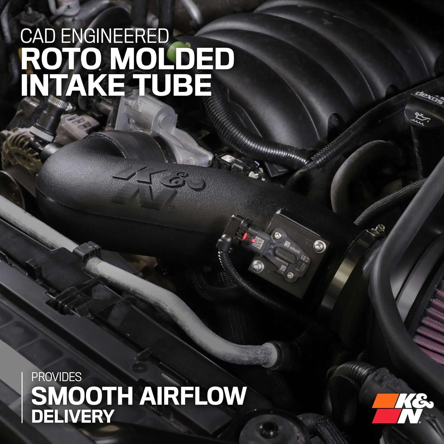 K&N is the inventor of the Air Intake System and has over 50 years of experience in the performance filtration industry. Proudly designed and manufactured in the USA, this premium cold air intake system is specifically designed for your vehicle and is dyno tested to provide a guaranteed increase in horsepower. It features a high flow intake tube, custom heat shield, and oversized K&N Washable High-Flow Cotton Air Filter for ultimate airflow. This Intake system replaces the restrictive OEM air box to provide an improved driving experience for daily driving or towing. It installs easily in about 60 minutes and is backed by a No-Hassle Lifetime Limited Warranty and will not void your factory warranty.