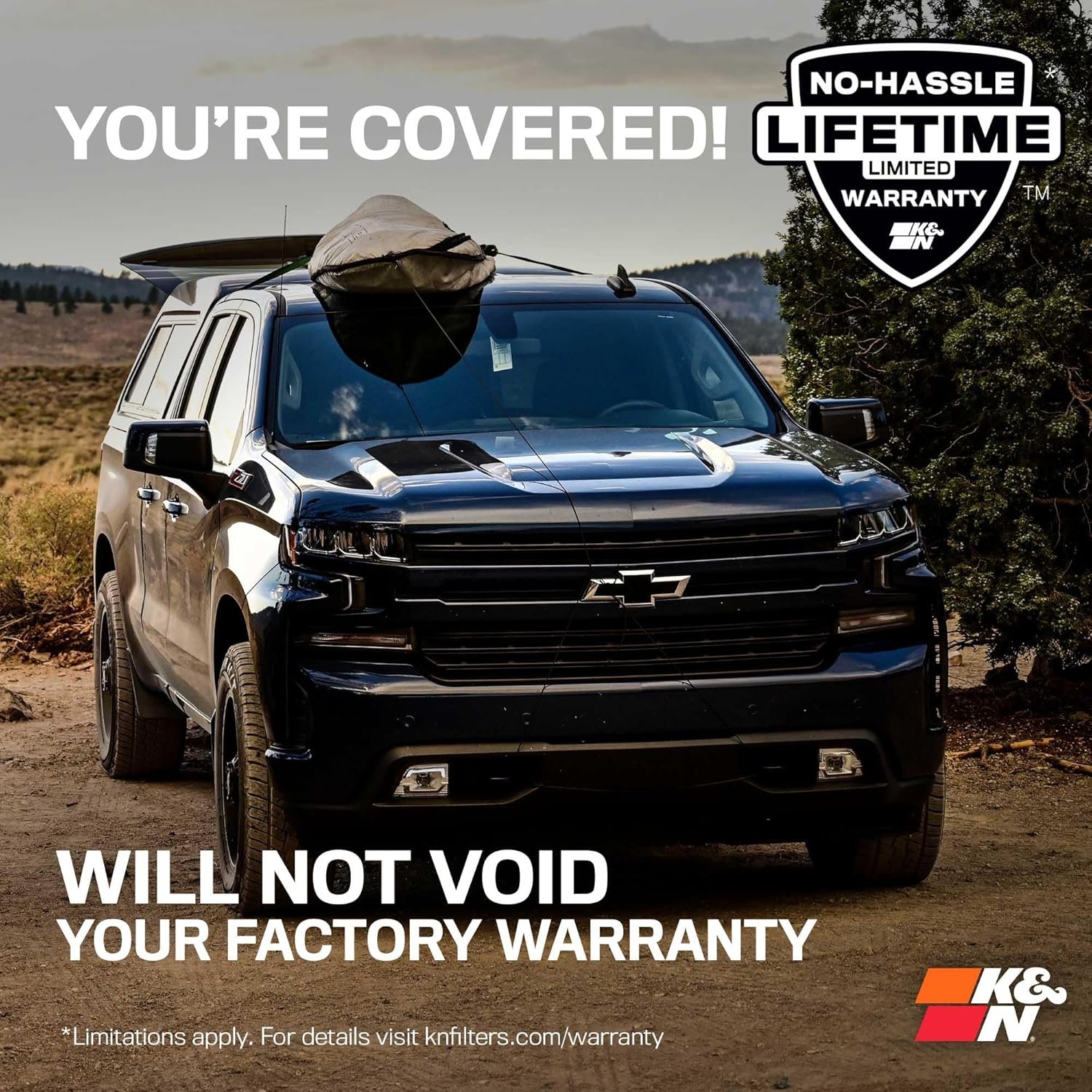 PREMIUM ENGINE PROTECTION FROM A TRUSTED BRAND: K&N air intake will not void manufacturer vehicle warranty & No-Hassle Lifetime Limited Warranty protects for the life of your vehicle.