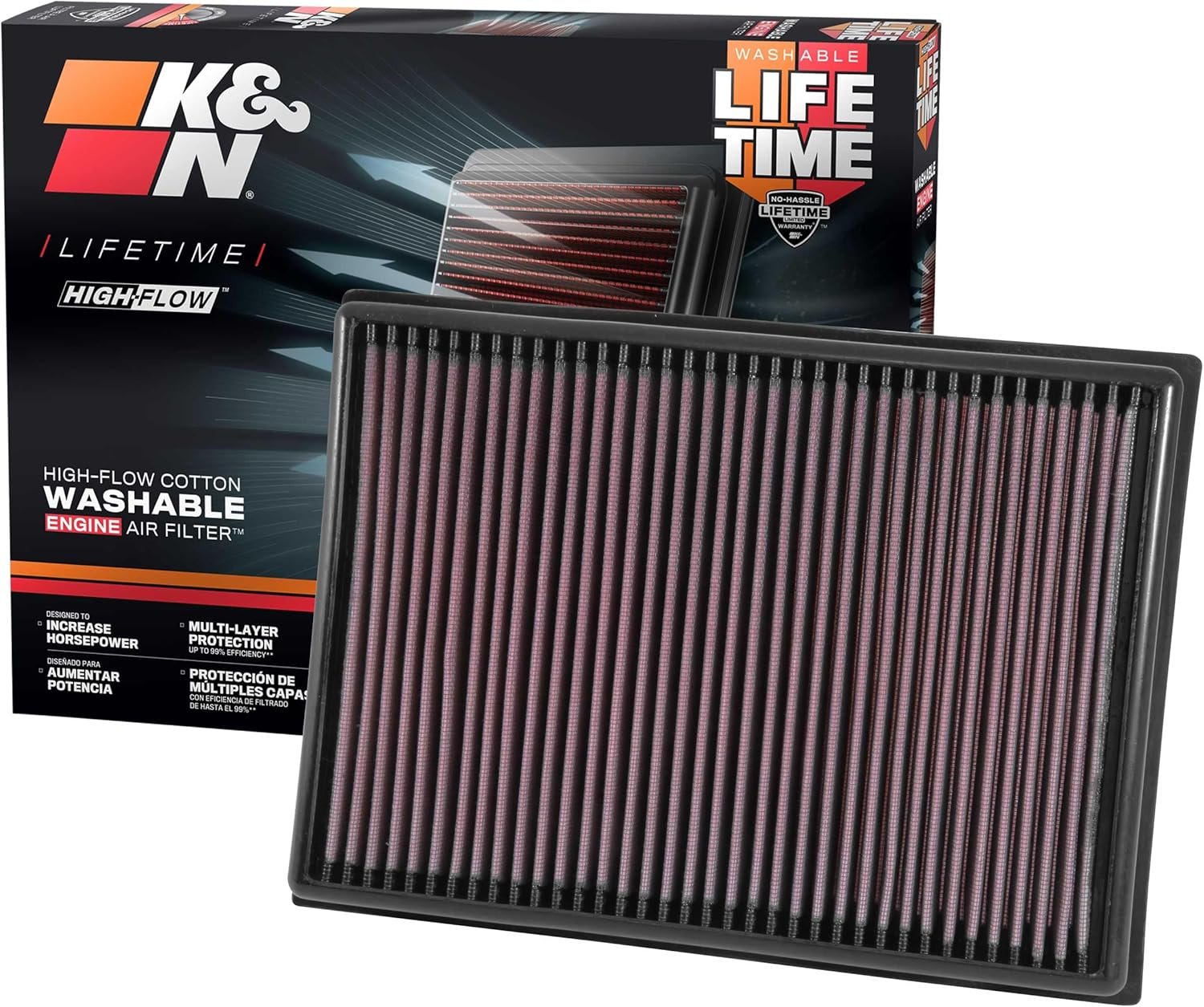 ULTIMATE LONGEVITY: No-hassle limited lifetime warranty on stock replacement K&N air filters- limitations apply