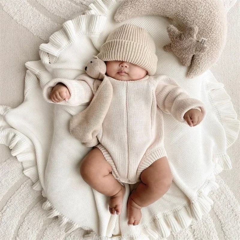 Knit Baby Blanket Newborn 100% Cotton Infant Swaddle Wrap Sofa Throw Blankets Baby Receiving Crib Stroller Blanket Bedding Quilt
