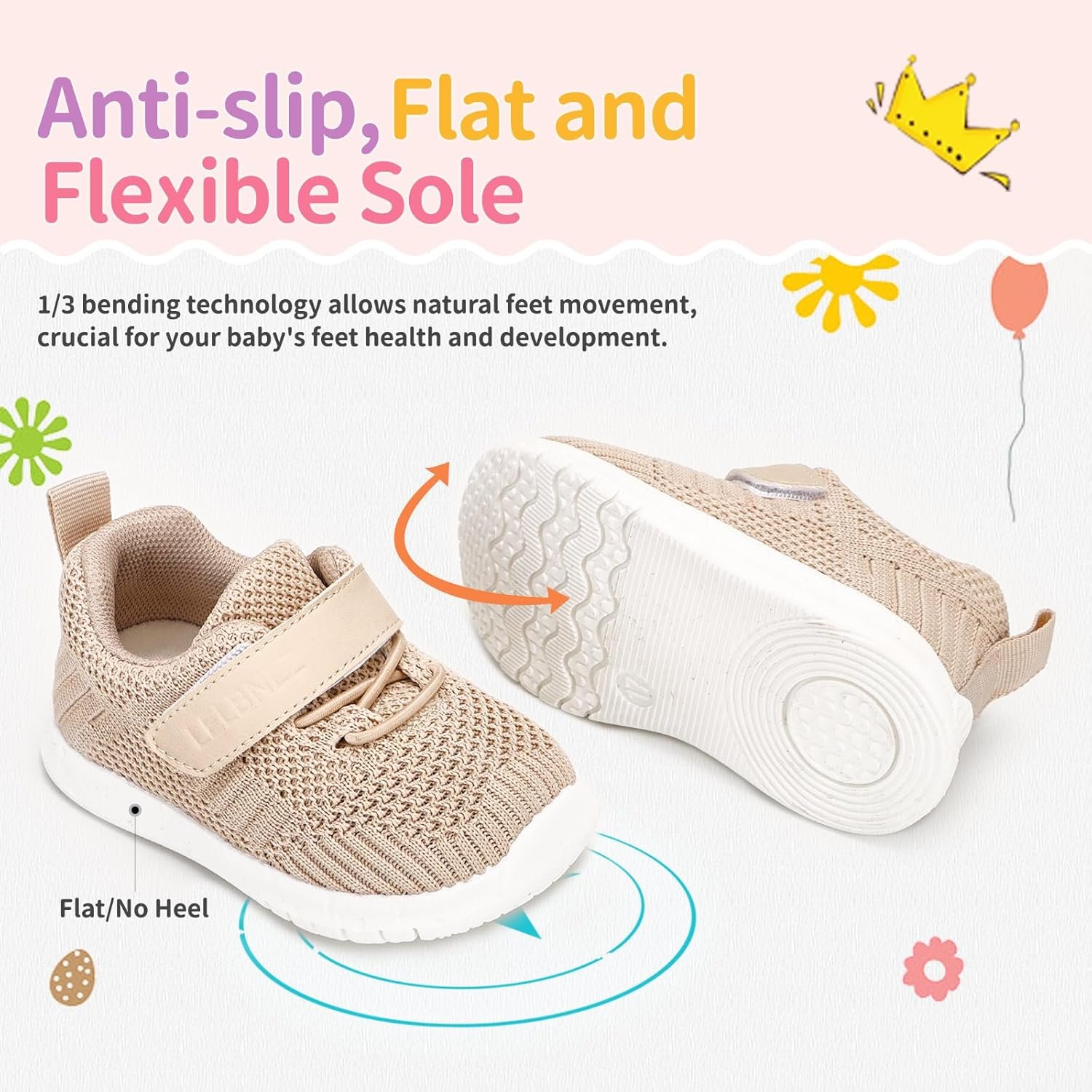Customers find these toddler shoes comfortable and easy to put on and take off, with a perfect fit that holds up well after weeks of active use. They are lightweight and feature a non-slip sole, with one customer noting they provide good grip on various surfaces. Customers appreciate the style, with one mentioning they go with any casual outfit, and another noting the sock-like slip-on design.