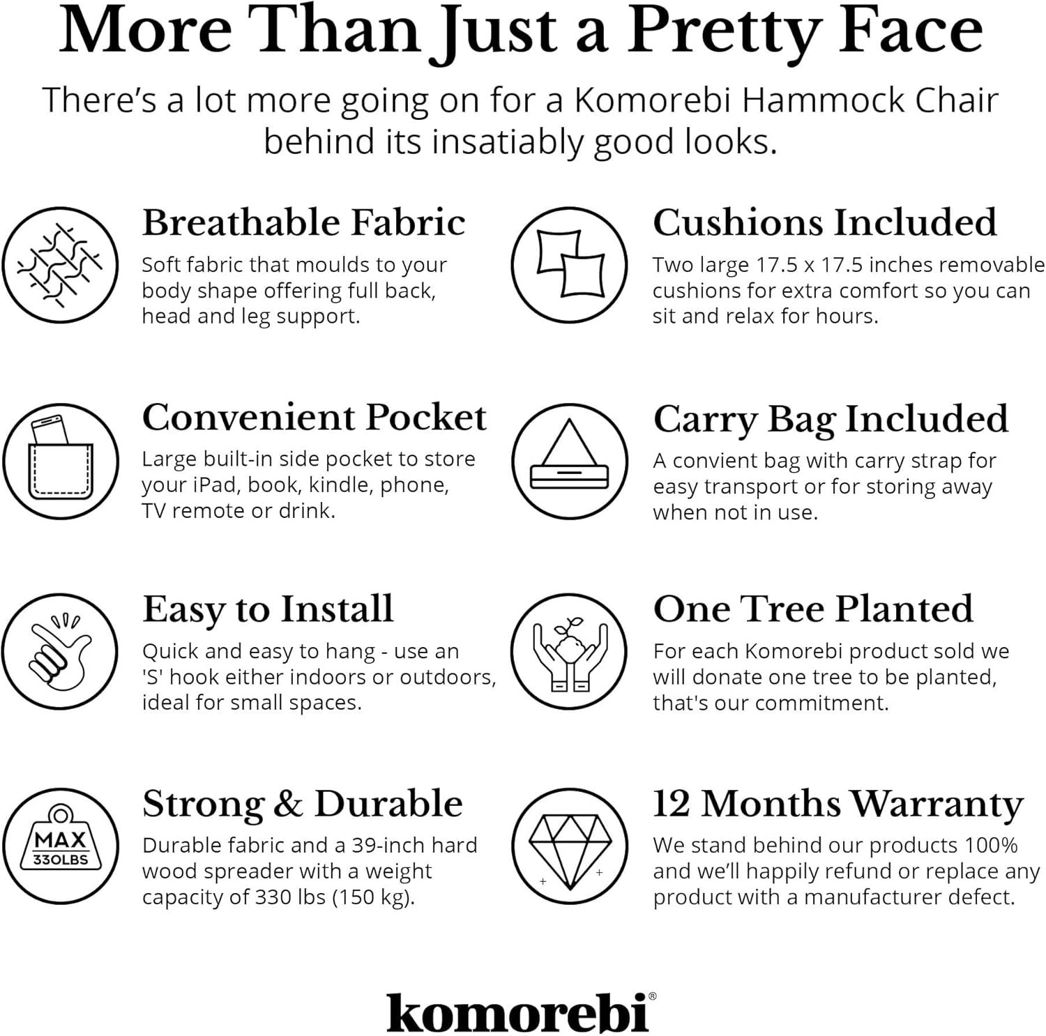 KOMOREBI Hammock Chair – Ivory – 60″ x 47″ – Hanging Rope Swing for Indoor & Outdoor – Soft & Durable Cotton Canvas – 2 Cushions Included – Large Macrame Hanging Chair for Bedroom, Patio, Porch