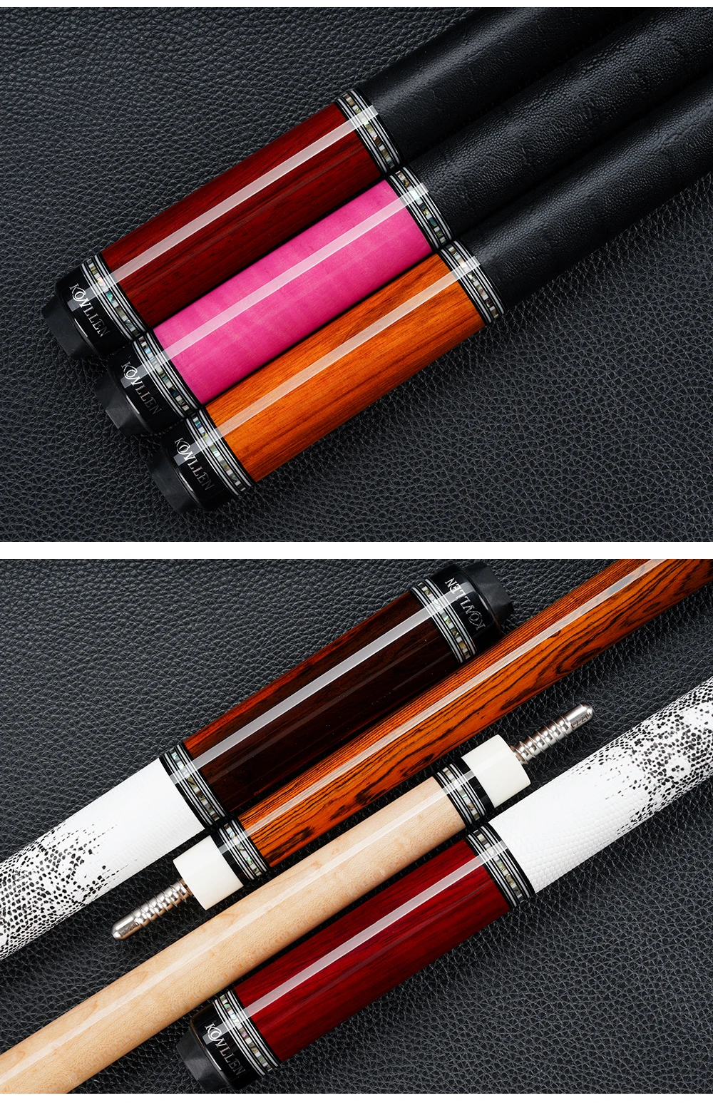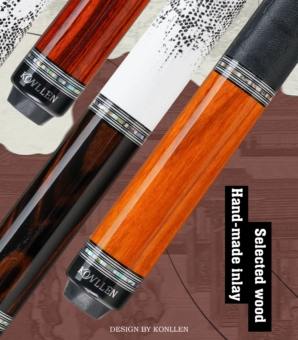 [Ingenuity, inheritance of excellence] Since 1993, the KONLLEN brand from the United States has reached a superb level in the field of handmade cue production. With years of accumulated production experience, we are familiar with the characteristics of various precious woods and can tailor-make billiard cues with unique characteristics according to the needs of different consumers. Especially in the selection of wood and the craftsmanship of inlay, it can bring players a more outstanding professional sense of play.