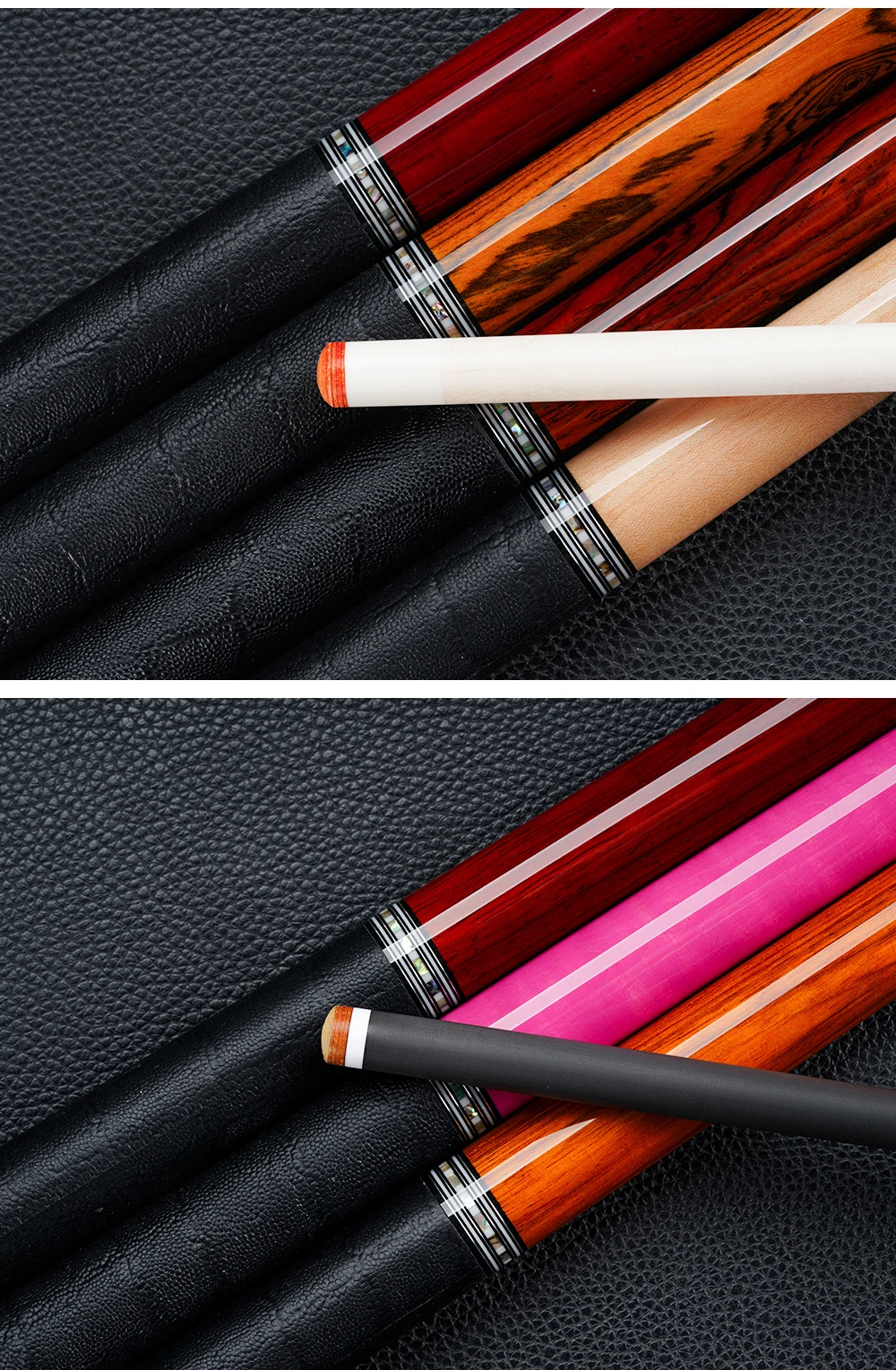 The forearm and sleeve of the pool cue are carefully crafted from highly wear-resistant and beautifully textured tiger wood. They feel smooth and comfortable to hold. The combination of tiger stripes and pink tones presents a unique visual effect, exuding a warm and soft atmosphere.